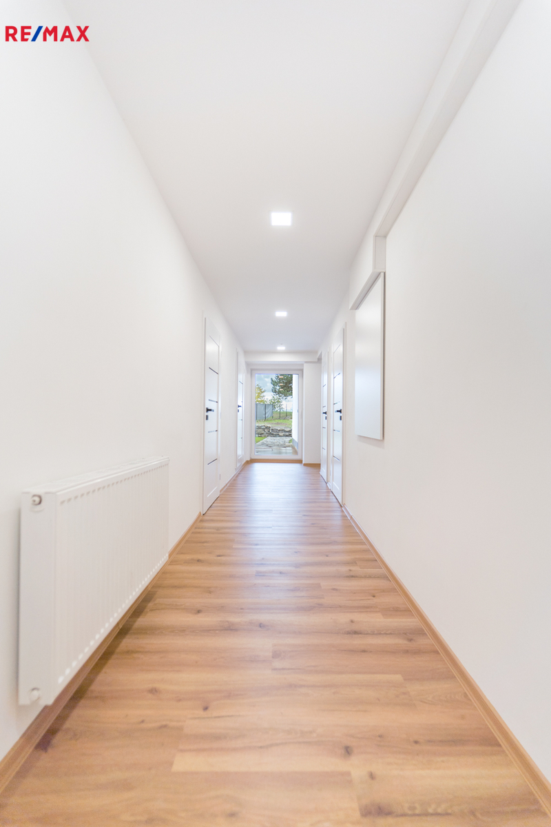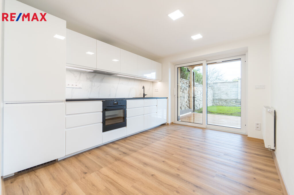 Dům prošel v roce 2025 kompletní rekonstrukcí včetně všech rozvodů elektřiny, vody a topení. Nová střecha, zateplení fasády, plastová okna s trojsklem a nové podlahy. Vytápění zajišťuje moderní kondenzační plynový kotel s radiátory v celém domě. Kuchyňská linka na míru s vestavěnými spotřebiči (myčka, trouba, varná deska, lednice), koupelna s vanou i sprchovým koutem, samostatné WC. Veškeré interiérové prvky – dveře, podlahy, obklady – laděny v jednotném přírodním stylu s důrazem na kvalitu a nadčasovost.