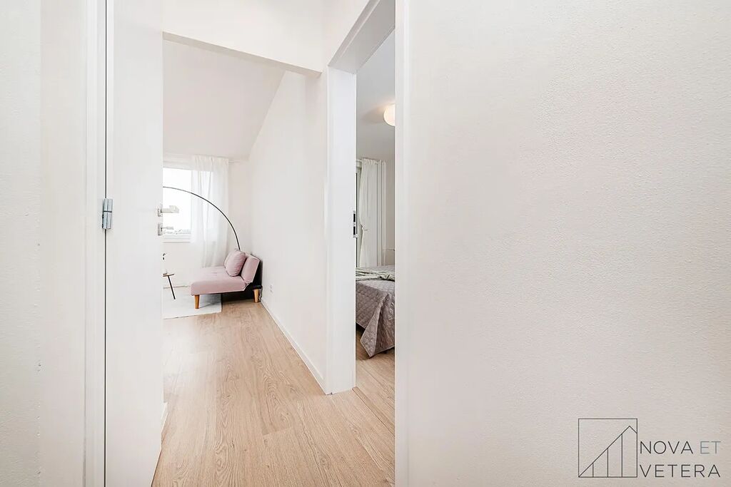 Byt prošel kompletní rekonstrukcí – nové rozvody, podlahy, obklady a koupelna se sprchovým koutem (sanita Grohe). Součástí je nová kuchyňská linka s vestavěnými spotřebiči značky Gorenje (lednice s mrazákem, trouba, varná deska, myčka, digestoř). Dispozici tvoří obývací pokoj s kuchyňským koutem, samostatná ložnice se vstupem na lodžii, prostorná šatna, koupelna a samostatná toaleta. K dispozici je také technická místnost s přípojkou na pračku.
