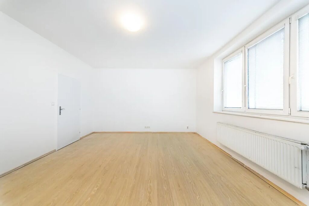 Srdcem bytu je prostorná a světlá obytná místnost s moderním kuchyňským koutem, která přirozeně propojuje prostor pro vaření, stolování i odpočinek. Z ní je přístup do druhého pokoje, který lze využít jako ložnici či pracovnu. Koupelna s toaletou působí čistě a funkčně.