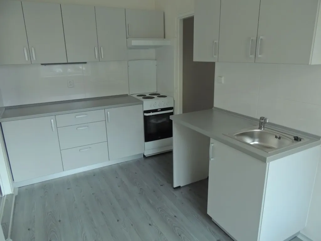 Kuchyňská linka je opatřena elektrickým sporákem a elektrickou troubou a s možností připojení pračky. Lokalita s dostatkem zeleně a parkovací plochy.