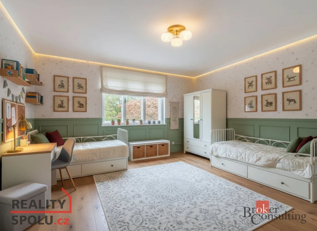 Už když se díváte z oken, máte pocit, že jste na venkově – zelené výhledy, šumění vody, zahrada rozdělená do dvou příjemných částí, které si můžete upravit podle svých představ. Kdo hledá atmosféru a prostor k tvoření, bude tady doma.