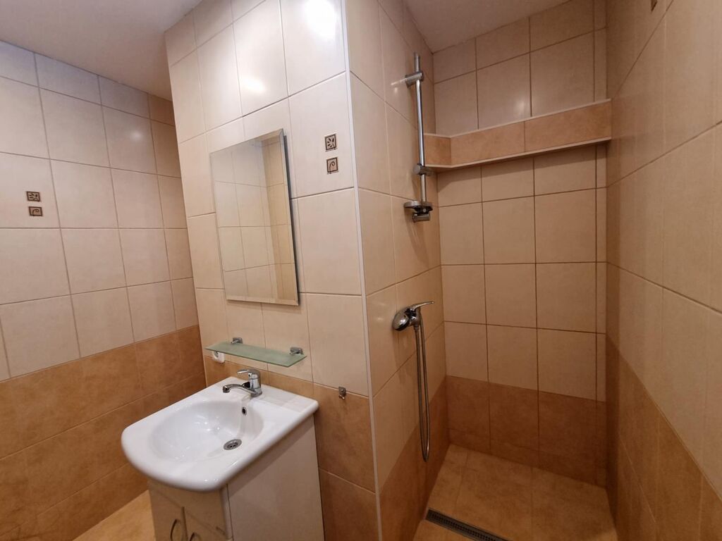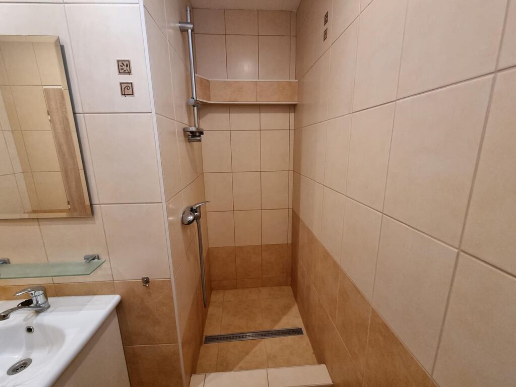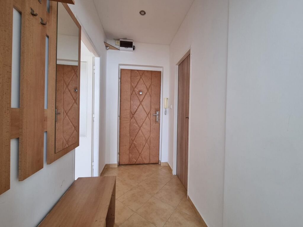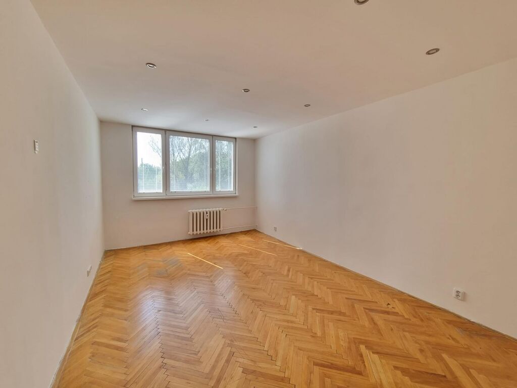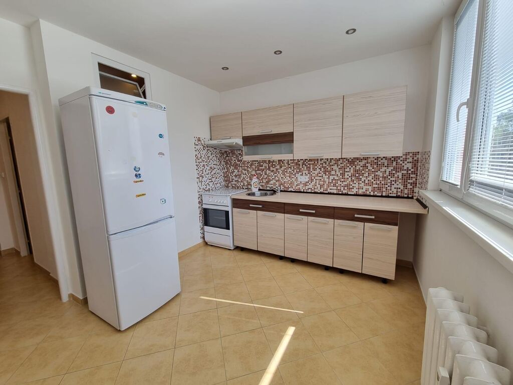 V bytě obdélníková předsíň, ze které se vchází do všech místností. Neprůchozí obývací pokoj, slunný, parkety, obdélníkový. Kuchyně čtvercová, vybavená kuchyňskou linkou, sporákem s elektrickou troubou a plynovým sporákem. Lednice, Koupelna zděná, spojena s wc, nadstandardně na byt s okénkem, které větrá, ale také prosvětluje prostor. K dispozici pračka.