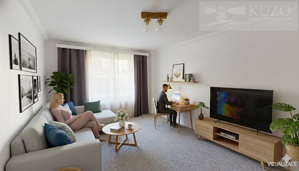 Prostorné a praktické uspořádání: Byt o dispozici 1+1 sestává z velkého obývacího pokoje a samostatné, prostorné kuchyně, která pohodlně pojme i jídelní kout.