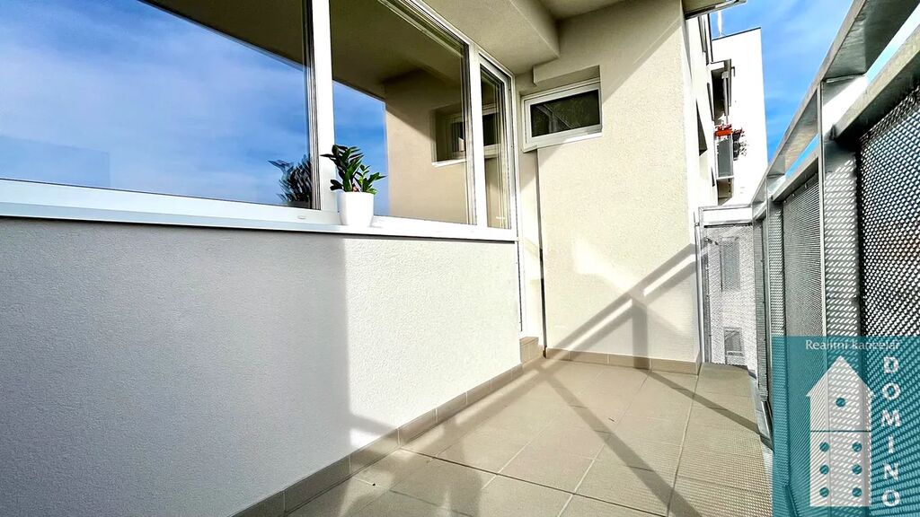 Z obývacího pokoje je vstup na balkon s výhledem do zeleně. Je zde dostatek prostoru na pěstování bylinek v květináči a na posezení, kde si v klidu vychutnáte svůj hrníček kávy.