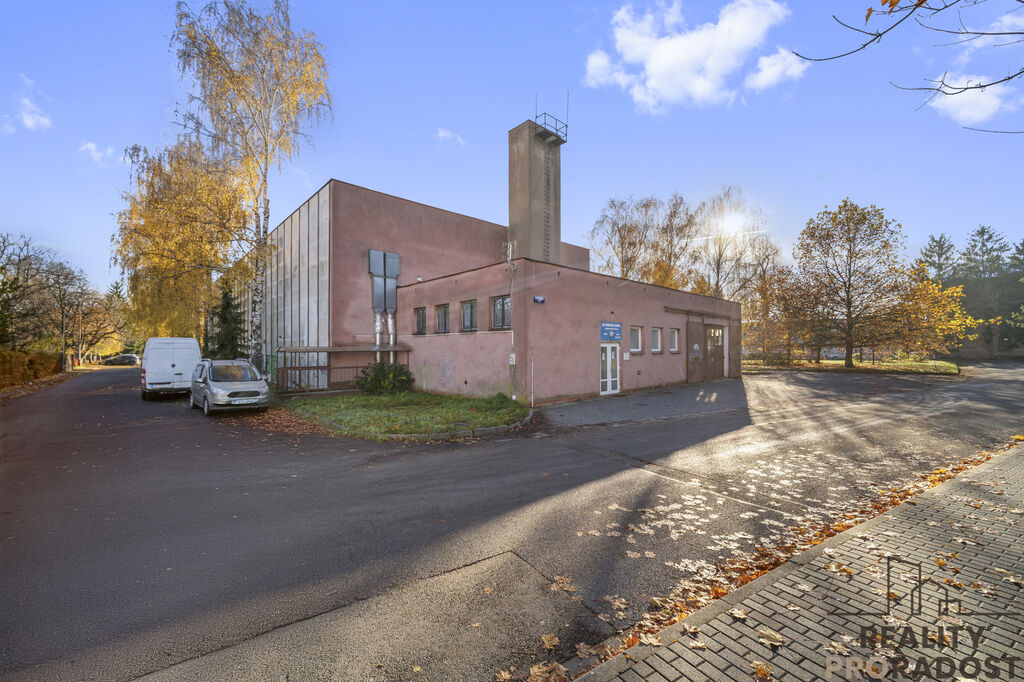 Součástí je zázemí s kuchyňkou, samostatným WC a menší místností pro kancelář nebo odpočinek.