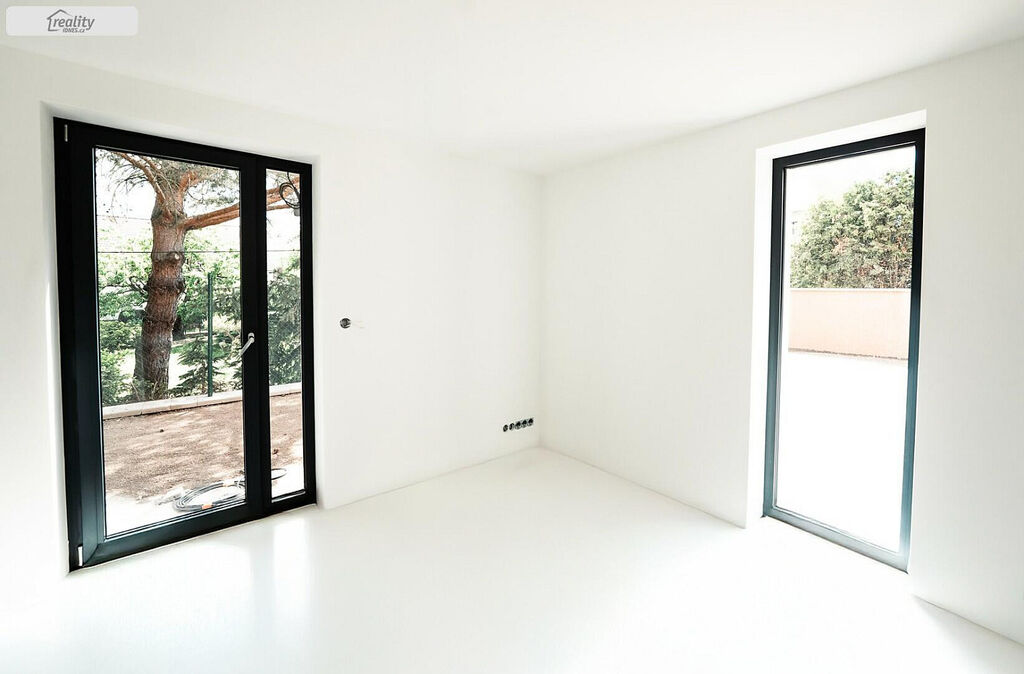 V zastoupení developera nabízíme nadstandardní byt v samostatné vile, v které se nachází pouze osm bytových jednotek. Tento byt je o dispozici 4+kk a užitné ploše 110 m² a jeho součástí je zahrada 277 m² s vlastním vjezdem a parkovacím stáním, další parkovací stání v pozemním podlaží lze dokoupit. Byt disponuje dvěma koupelnami, jednou samostatnou a druhou jako součást ložnice společně s WC. Další WC se nachází na chodbě bytu. Budoucí majitelé jistě ocení samostatnou technickou místnost a rovněž prostornou šatnu, která je propojena samostatným vchodem z ložnice.