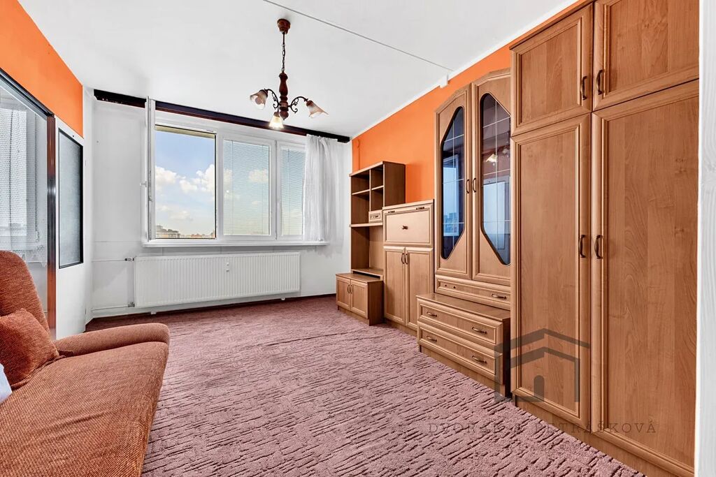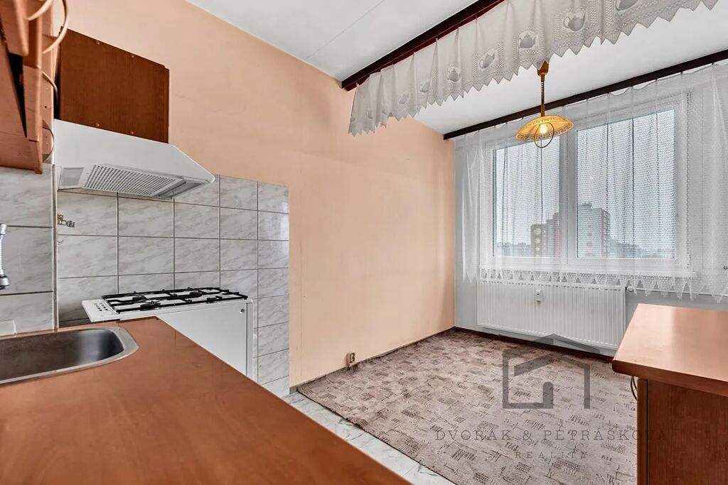 Bytová jednotka je ve stavu před rekonstrukcí a je umístěná v posledním, tedy 8.patře panelového domu s výtahem na adrese Růžová 3088/17. Na patře jsou pouze 3 byty s klidnými sousedy, kteří zde žijí řadu let. Byt disponuje předsíní s vestavěnými skříněmi, vstupy do dvou ložnic, obývacího pokoje, do koupelny a na toaletu. Na obývací pokoj navazuje oddělená kuchyně s místem na jídelní stůl a vstupem do koupelny.