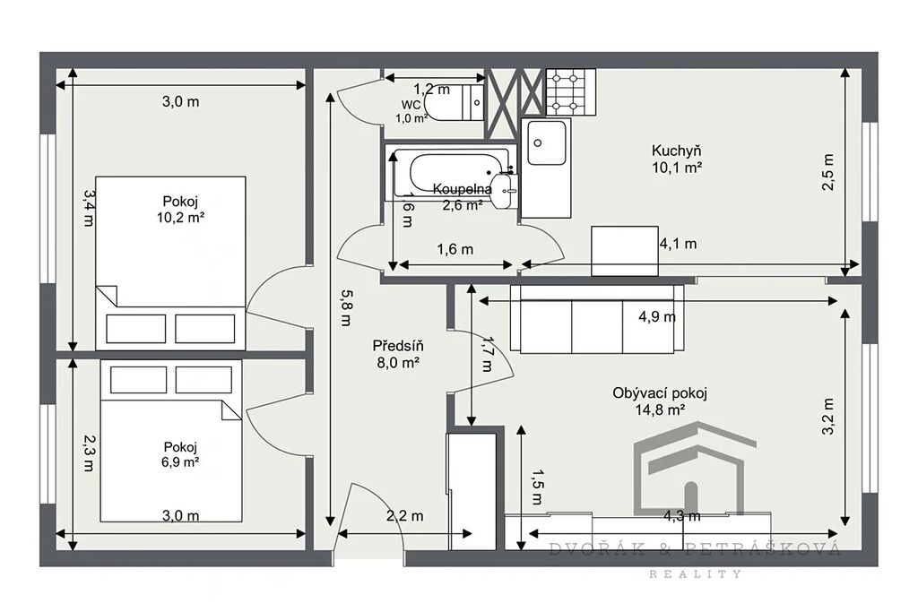 Realitní společnost Dvořák & Petrášková reality vám nabízí k prodeji byt v osobním vlastnictví 3+1 se sklepem a komorou na patře o celkové ploše 56 m2.