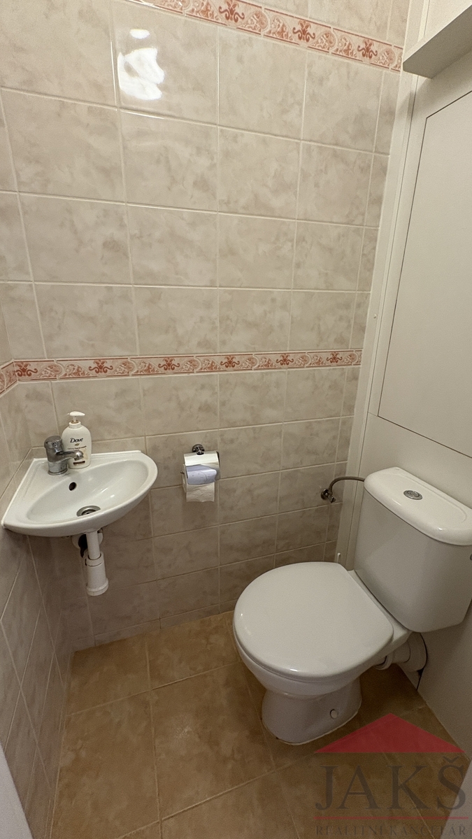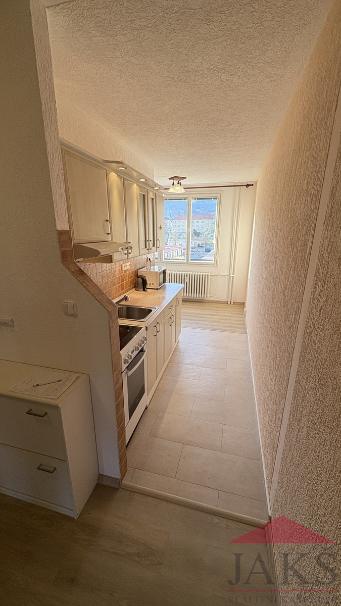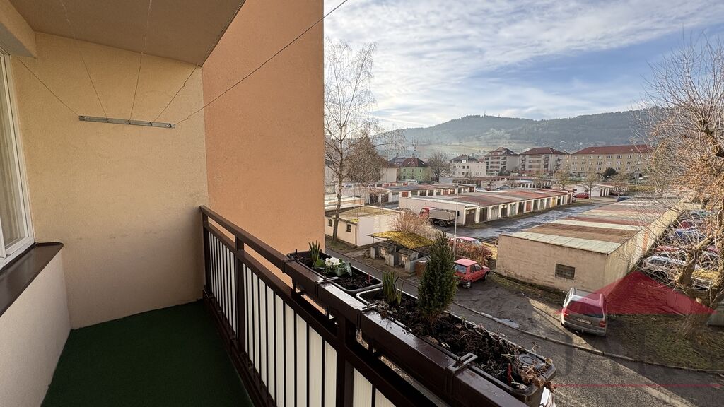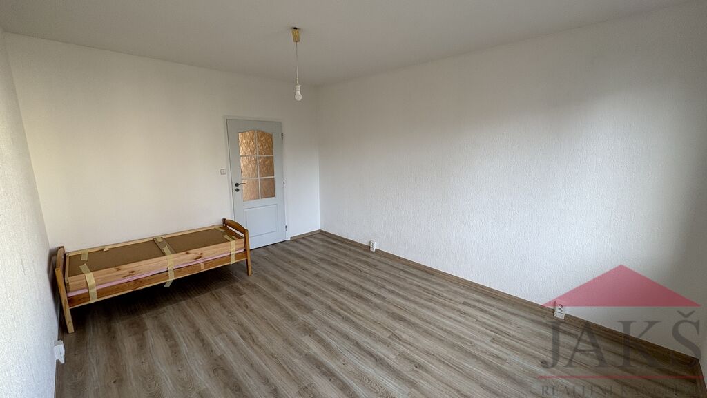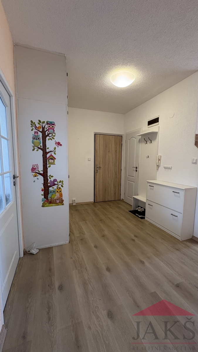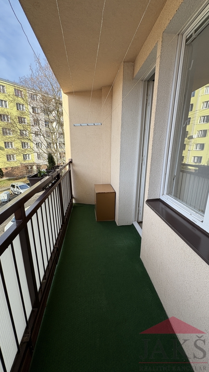Popis: předsíň (botník s věšákem, šatní skříň), sam. WC s umyvadlem, kuchyň (kuch. linka s HV troubou, digestoří, spíží, lednicí s mrazákem a prostorem pro myčku či pračku), koupelna (vana, umyv. se zrcadlem a skříňkou, vývody na pračka), obývací pokoj (koberec) se vstupem na prostornou lodžií a ložnice (dětská postel).