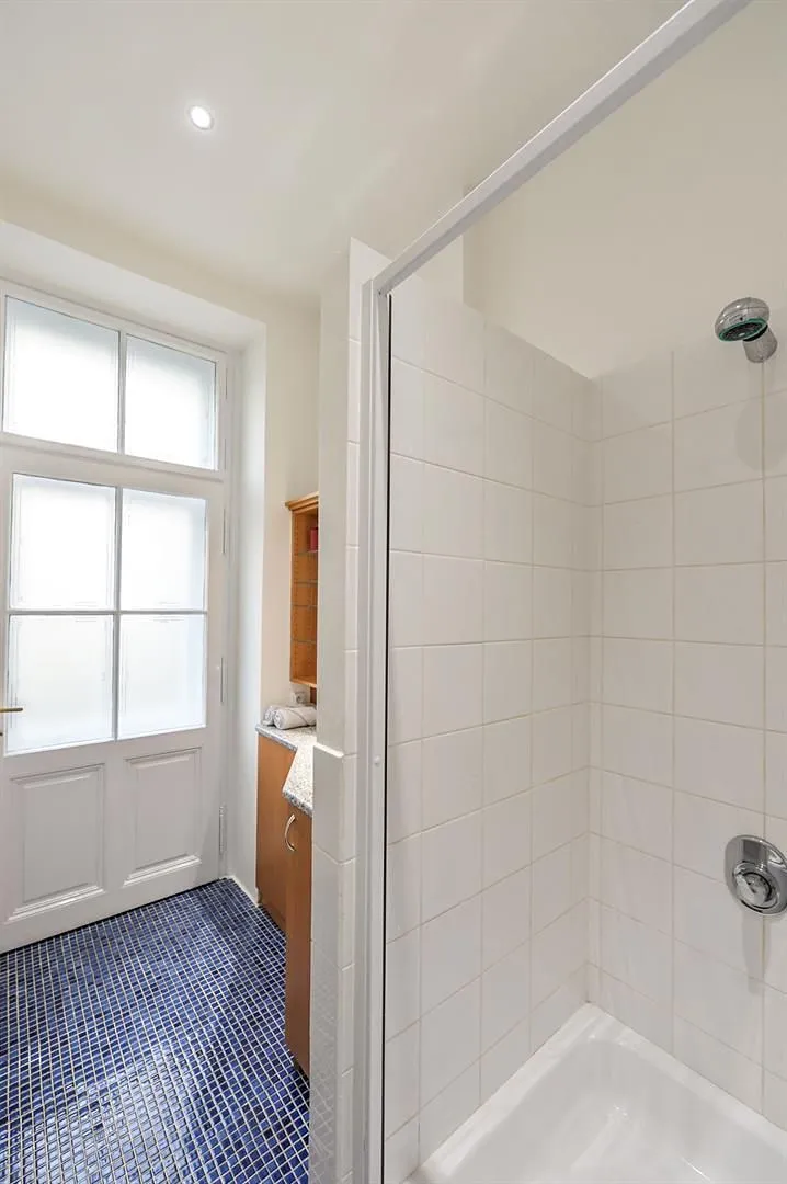 Dolní podlaží nabízí chodbu, druhou ložnici s vlastní koupelnou vybavenou vanou a toaletou.