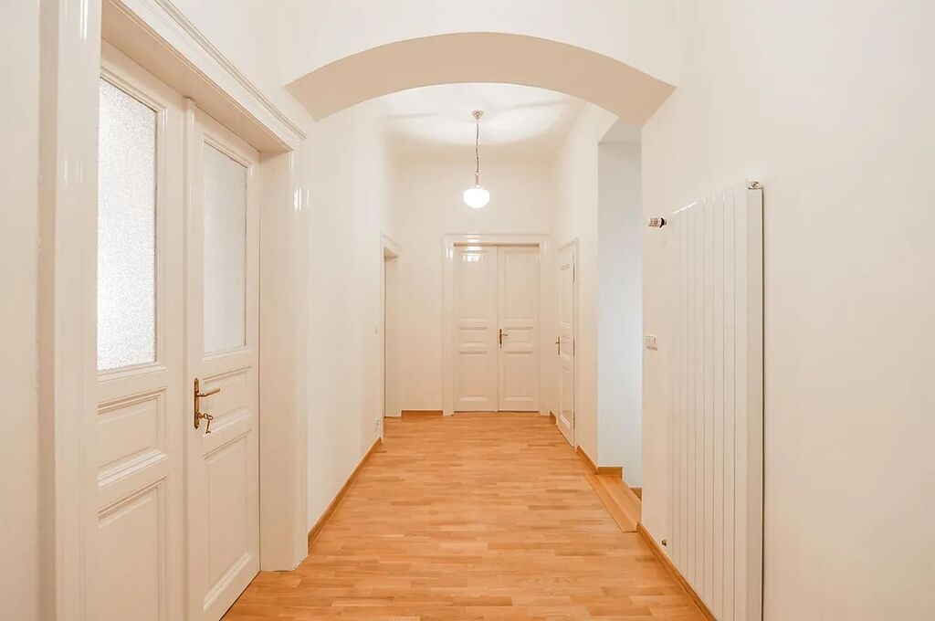 Nově zrekonstruovaný mezonetový byt 3+1 (2 ložnice, 2 koupelny), s balkónem, o celkové rozloze 118 m2, je situovaný ve 1. patře a v přízemí, rekonstruované rezidenční budovy s výtahem v populární lokalitě Praha 2 Vinohrady, v ulici Mánesova.