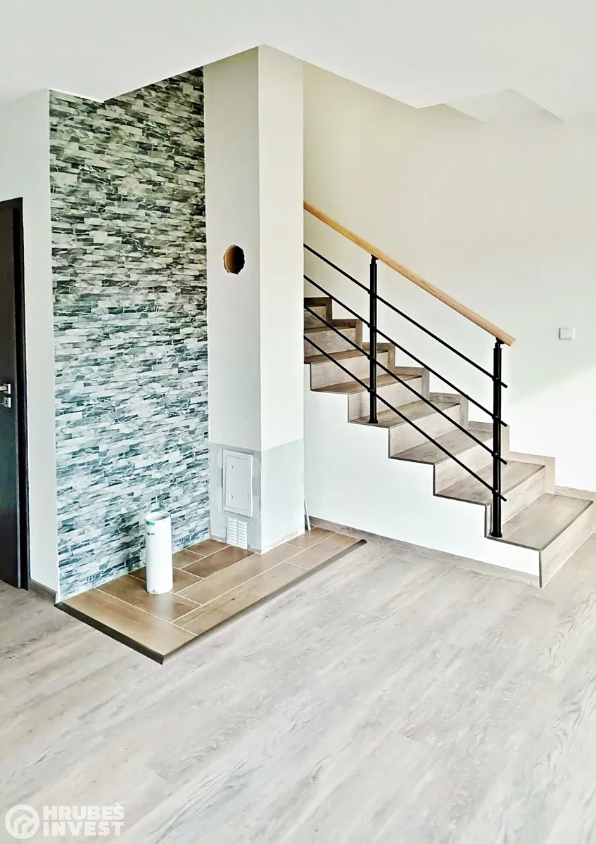 2NP – 3 pokoje, koupelna s vanou, toaleta. O vytápění se bude starat elektrické podlahové vytápění (el. kabely zalité v betonu), voda je městská, odpady jsou svedeny do obecní kanalizace a je přiveden optický kabel na internet. Dům bude mít velmi nízké náklady na bydlení. Je provedena příprava na krbová kamna, dále příprava pro fotovoltaiku (po dohodě je možno zajistit montáž i se zajištěním dotace). V ceně nemovitosti je dlážděné parkovací stání a terasa, a oplocení pozemku. V zadní části domu, mezi terasami bude vybudována stěna, kvůli soukromí.