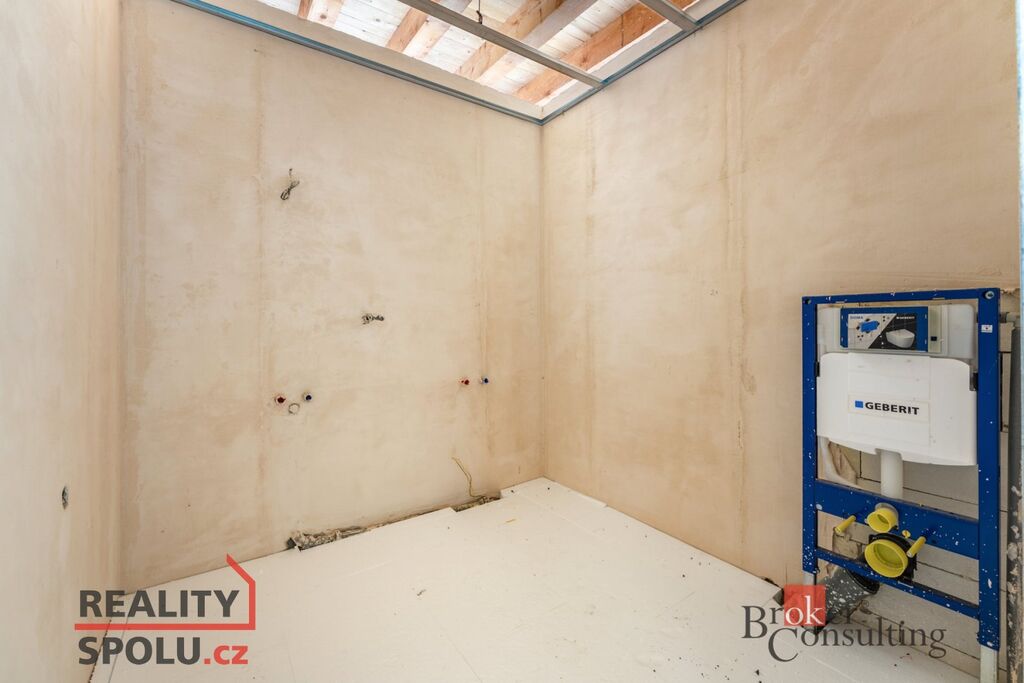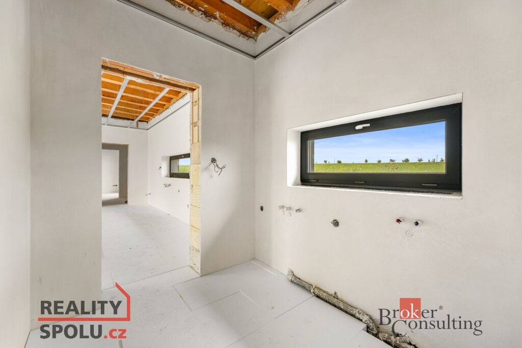 Stavba je navržena s ohledem na moderní energetická řešení – počítá s vytápěním prostřednictvím teplovodního podlahového systému napojeného na tepelné čerpadlo vzduch–voda a také s instalací fotovoltaické elektrárny. Dokončení domu je plně ve Vašich rukou – finální řešení technologií a vybavení bude záležet na novém majiteli. O možnostech a aktuálním stavu Vám rádi řekneme víc při osobní prohlídce.