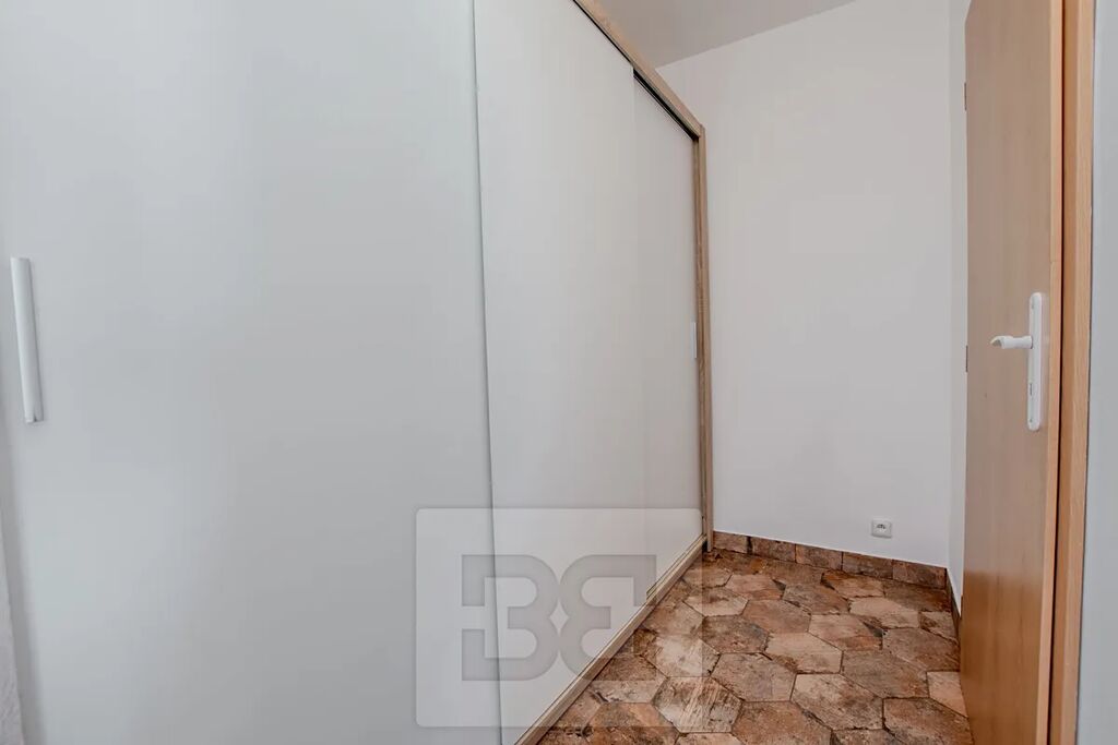 Byt se skládá ze vstupní chodby, koupelny s toaletou a vanou, obývacího pokoje s prostornou kuchyní a kuchyňským ostrůvkem. Z chodby s velkou vestavěnou šatní skříní se vchází do ložnice. V obývacím pokoji a ložnici je položena nová vinylová podlaha, která interiéru dodává moderní vzhled i praktičnost.