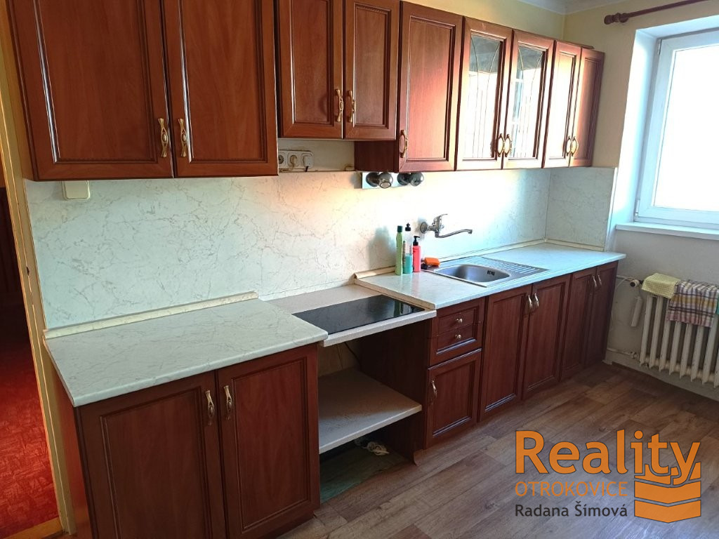 nabízíme k prodeji byt 2+1 s lodžií. Byt o čisté výměře 55 m2 je ve 3. NP v cihlového domu bez výtahu. K bytu náleží sklepní kóje v suterénu domu o výměře 19m2. Byt je v původním stavu určený k revitalizaci, vhodný jako investice. Prostorná předsíň s vestavnými skříněmi a komorou s oknem nabízí možnost stavební úpravy a změny dispozice bytu na 3+kk, zděné bytové jádro je vybavené vanou, umývadlem, WC je samostatné. Velká kuchyně je vybavena linkou. Pokoje jsou průchozí, menší z pokojů má vchod na lodžii, orientace na jih. Podlahy původní lino a parkety, okna plastová, dům i střecha jsou zatepleny. Dům je v zeleni, žádaná lokalita v klidné části obce, ale s velmi dobrou dostupností vybavenosti obce, školy, školky, MHD a doprava směr Zlín.