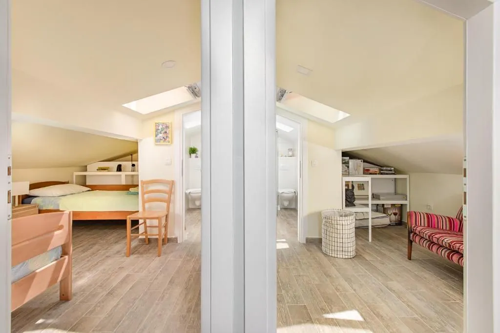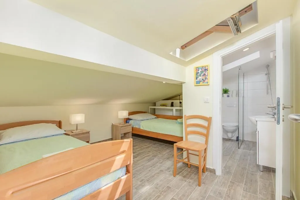 Apartmán o rozloze 98,76 m2 je kompletně zařízený a v prvním podlaží se nachází chodba, koupelna, dvě ložnice, obývací pokoj s kuchyní a jídelnou s přístupem na prostornou terasu. Vnitřní schodiště vede do podkroví kde jsou další dvě ložnice, balkon a dvě koupelny. K apartmánu náleží zahrada o rozloze 76 m2 a úložný prostor v suterénu budovy.