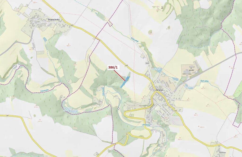 Lesní pozemek o výměře 4395 m2, parcelní číslo 386/1, podíl 1/1, katastrální území Žďárec, obec Žďárec, obec s rozšířenou působností Tišnov, okres Brno-venkov, Jihomoravský kraj. Částečně po těžbě.