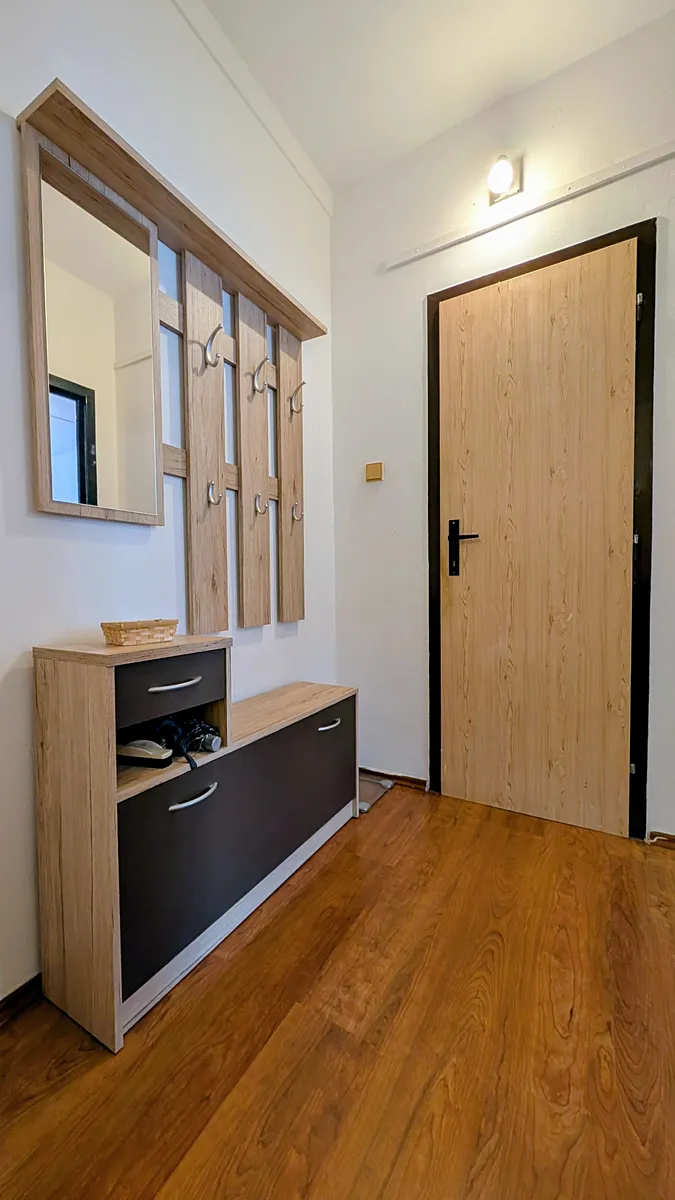 Byt má neprůchozí pokoje, plastová okna a zděné jádro. Samostatná kuchyně je vybavena kuchyňskou linkou a jídelním stolem. Z ložnice je vstup na balkon s výhledem do okolí.
