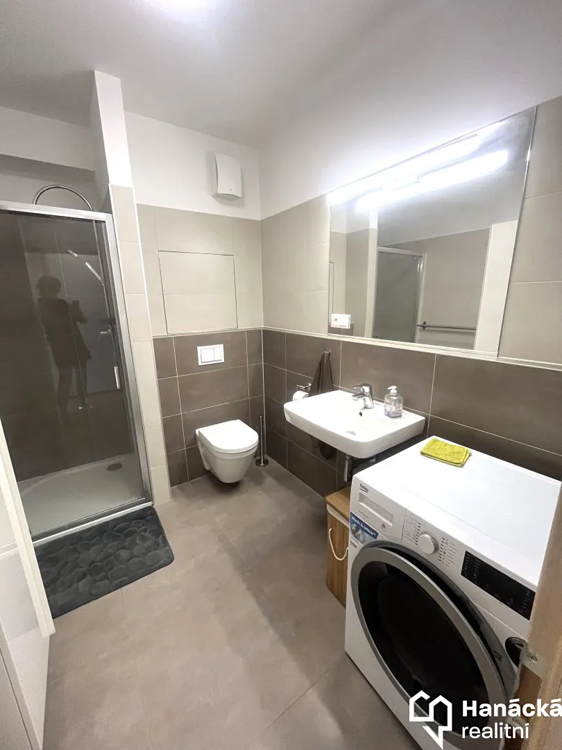 Nabízíme k pronájmu útulný, prostorný a světlý byt 1+kk s garážovým stáním v Olomouci na ulici Loudově. Byt se nachází ve 3. patře novostavby bytového domu s výtahem a disponuje pokojem s kuchyní, předsíní a koupelnou s toaletou. Okna bytu spolu s terasou jsou situovaná jižním směrem s výhledem na upravené okolí. Výměra bytu číní cca 38 m2 a slunná terasa cca 10m2. Díky poloze bytu jsou náklady na bydlení nízké. K bytu patří také garážové stání a zděný sklep. Z vybavení je k dispozici kuchyňská linka včetně spotřebičů (varná deska, elektrická trouba, digestoř, myčka na nádobí, lednička, mikrovlnka), vestavěná skříň v předsíni, obyváková stěna spolu se stolem a židlemi, koupelna se sprchovým koutem a pračkou. Garážové stání je v ceně nájmu a nachází se přímo v domě. Byt je situovaný v žádané lokalitě nedaleko autobusové zastávky s přímým spojem do centra města. Ideální pro jednotlivce nebo pár hledající klidné a pohodlné bydlení. Jelikož vlastník nedodal PENB, uvádíme energetickou třídu G. Nájem uveden bez záloh za služby a energie, je vybírána vratná kauce a provize pro realitní kancelář. Byt je k dispozici ihned. Bližší informace u makléře zakázky.