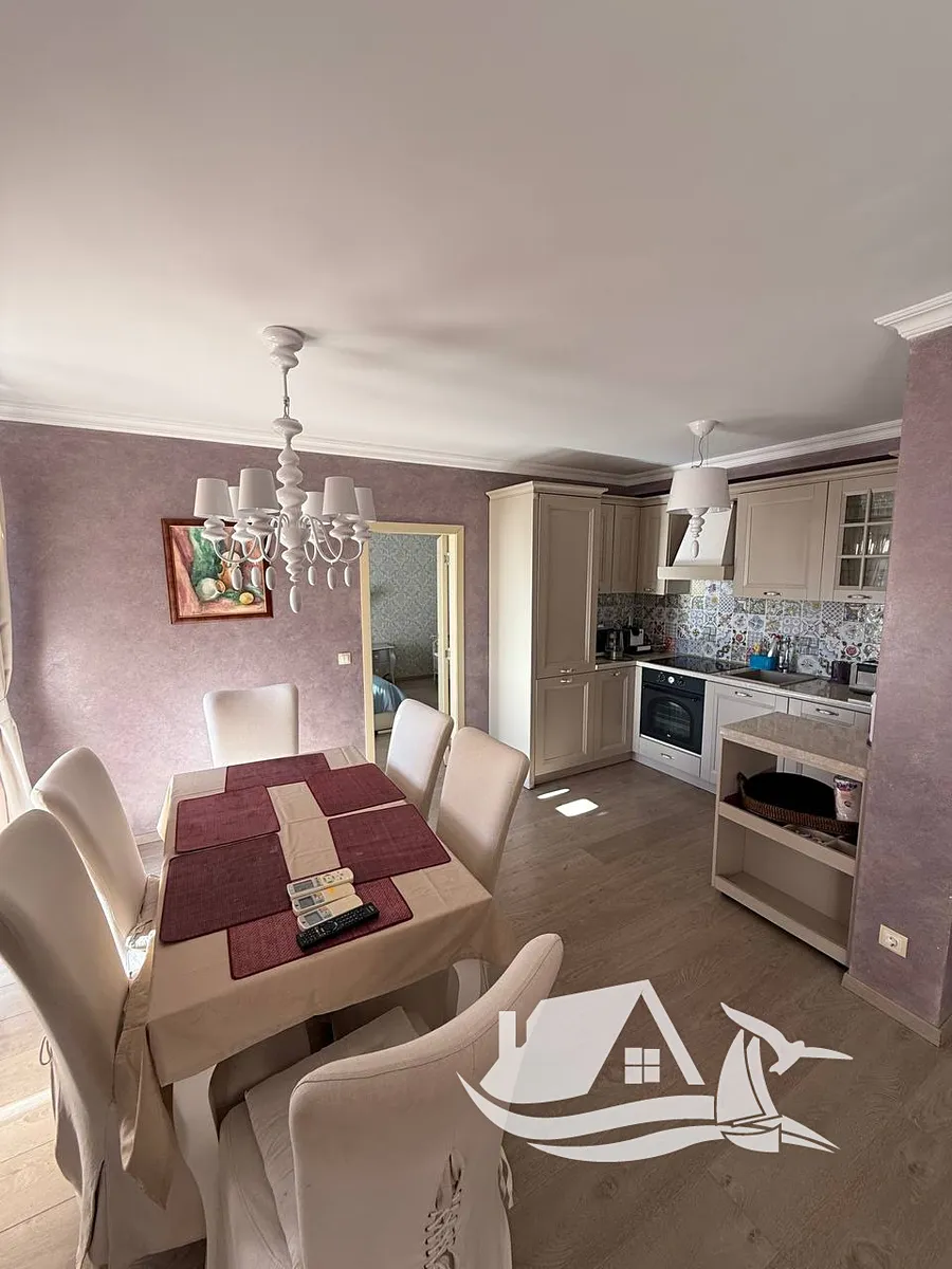 Tento výjimečný apartmán o dispozici 3+kk a celkové ploše 127,2 m² se nachází v 7. patře luxusního komplexu Harmony Palace – místa, které bylo navrženo pro ty, kdo chtějí žít i odpočívat s elegancí. Interiér tvoří prostorný obývací pokoj s kuchyňským koutem, dvě ložnice, dvě koupelny s toaletou a balkon s výhledem na bazén, který se stává přirozeným centrem odpočinku během teplých dnů.