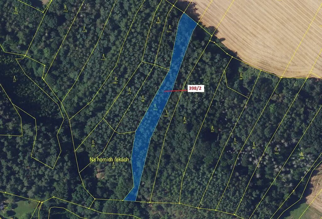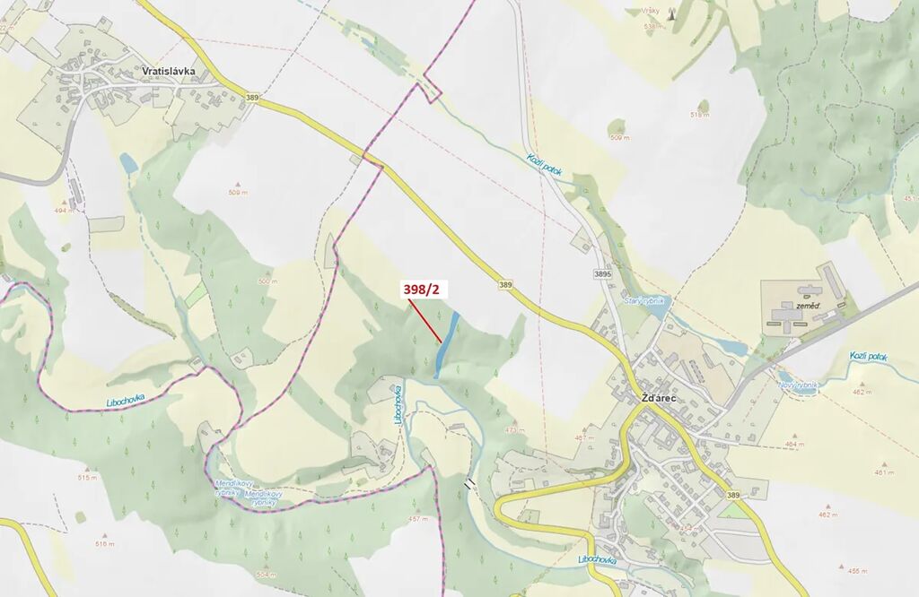Lesní pozemek o výměře 2615 m2, parcelní číslo 398/2, podíl 1/1, katastrální území Žďárec, obec Žďárec, obec s rozšířenou působností Tišnov, okres Brno-venkov, Jihomoravský kraj.