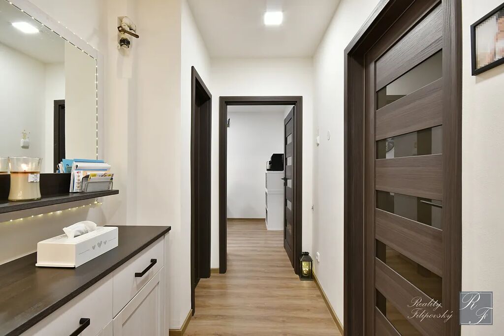 Dovoluji si Vám nabídnout výjimečný byt, který prošel kompletní nákladnou a promyšlenou rekonstrukcí. Jejím výsledkem je maximálně využitý prostor s logickým uspořádáním. To Vám bude každodenně usnadňovat život i péči o domácnost. Například spíž kombinovaná s technickou místností, ve které je umístěn bojler na ohřev vody, pračka i sušička, zaručuje svou polohou ničím nerušený odpočinek v každém z pokojů. Určitě také oceníte podlahové vytápění v celám bytě, pro jehož instalaci bylo nutné kompletně odstranit a nově vybudovat podlahy, včetně jejich podloží, které je nyní složeno z několika vrstev zaručujících vysokou míru stability a termoizolace. Samozřejmostí je pak chytrá regulace topení, individuálně v každé místnosti, k níž můžete využívat i aplikaci v mobilním telefonu. Díky tomuto systému budete mít náklady na vytápění zcela pod Vaší kontrolou. Ty jsou ostatně velmi příznivé i díky tepelné izolaci stropů o síle cca 15 cm mezi původní konstrukcí a sádrokartonovým podhledem. Elektroinstalace, voda i odpady, to vše je samozřejmě rovněž nové.