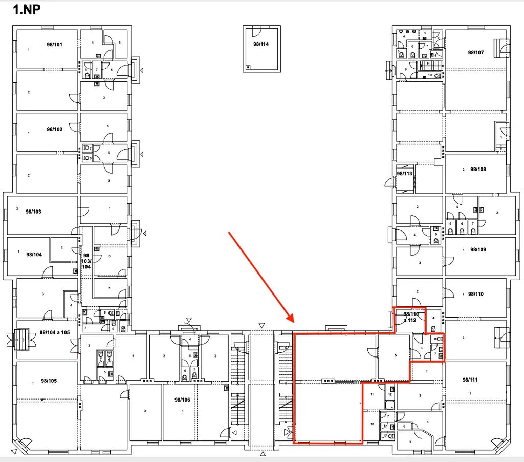 Jedná se o přízemní prostor v památkové budově s vyššími stropy 4m.