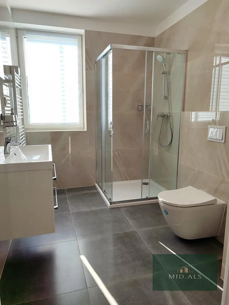 Byt je vybaven moderními technologiemi - klimatizací v obou místnostech, podlahovým vytápěním, řízenou rekuperací vzduchu a osvětlením na dálkové ovládání. V kuchyni je instalována kuchyňská linka s varnou deskou, troubou a lednicí. Koupelna se sprchovým koutem a WC je obložena mramorovými obklady. K bytu náleží zděná sklepní koje.