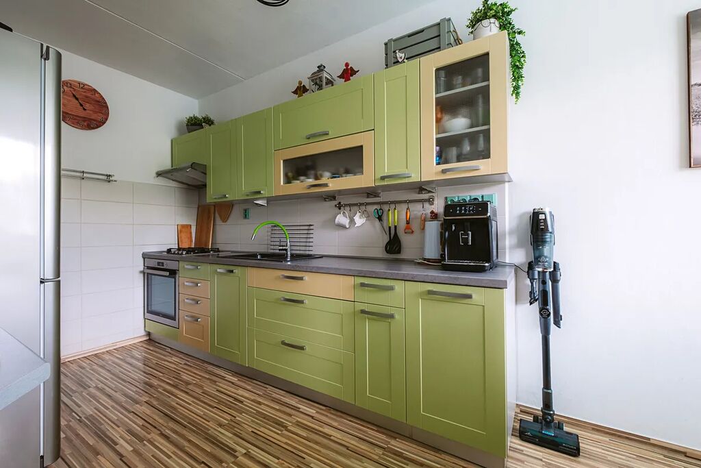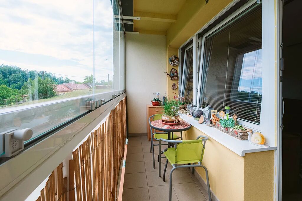 Byt disponuje vstupní chodbou se skříní, samostatným WC, koupelnou s vanou, kuchyňskou linkou se spotřebiči, obývacím pokojem, ložnicí a dětským pokojem. Z obývacího pokoje je přímý vstup na balkon. Balkon prošel kompletní rekonstrukcí, nové prosklené tabule + UV zastínění pomocí rolet. Balkon je orientovaný do zeleně a nabízí tak nejen krásné výhledy, ale i klid. K bytu náleží také sklep 2 m².