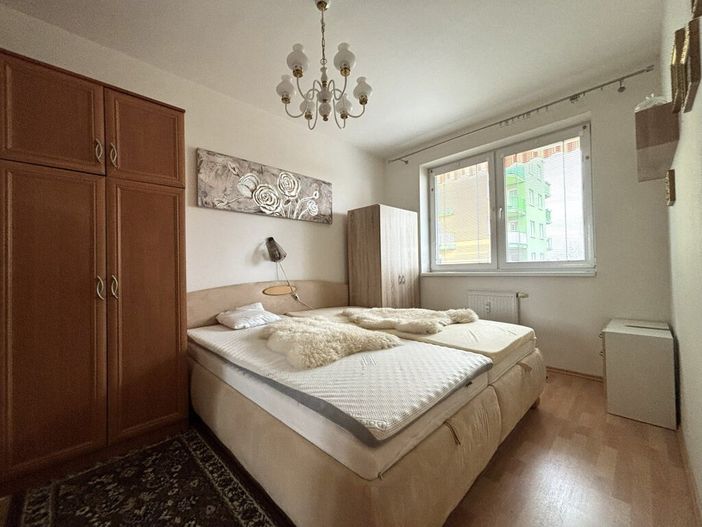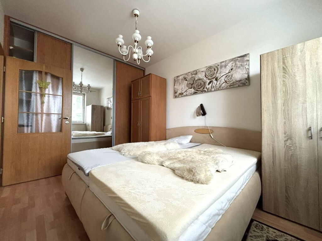 Ložnice je vybavena dvoulůžkem a vestavěnou šatní skříní.