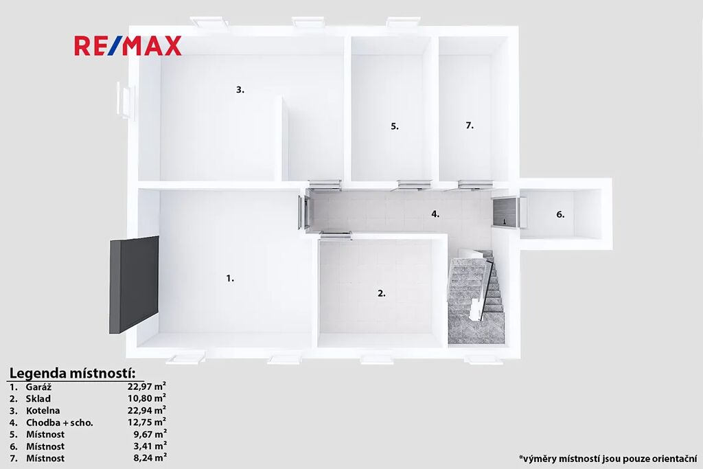 Orientační výměry jednotlivých místností jsou zmíněné v přiložených půdorysech. Spolu s tím Vám doporučujeme projít si nemovitost za pomoci 3D virtuální prohlídky, která Vám dopomůže k plné představě o rozložení jednotlivých místností.