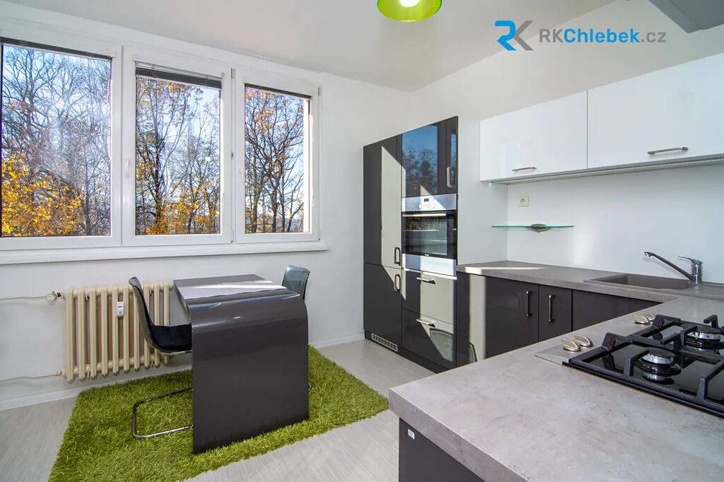 Byt sestává z plně vybavené kuchyně vyrobené na míru, včetně spotřebičů ( lednice s mrazákem, elektrická trouba, mikrovlnná trouba,plynový sporák, digestoř) a jídelního stolu se židlemi, světlého obývacího pokoje vybaveného pohodlnou sedací soupravou a tv sestavou, ložnicové části s manželskou postelí a velkou vestavěnou skříní na míru, koupelny s prostorným sprchovým koutem a toaletou, chodby s botníkem.
