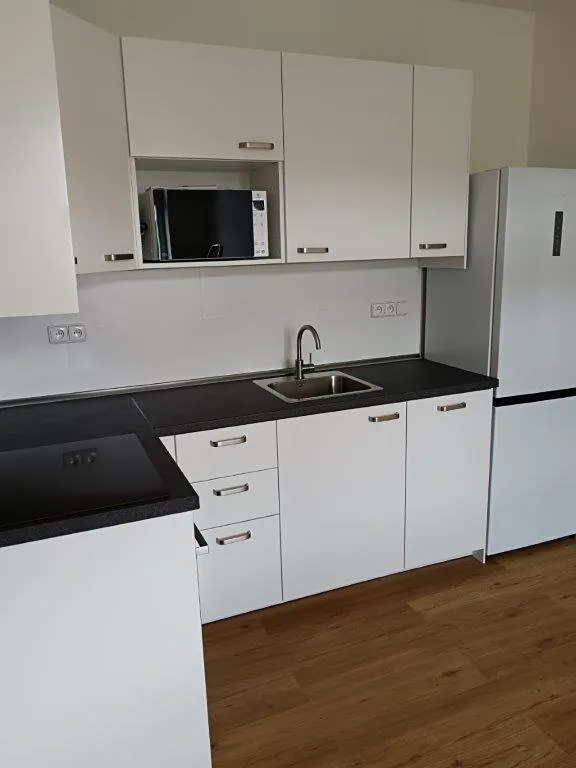 Byt je prostorný a nabízí komfortní bydlení pro jednotlivce či pár. Kuchyňský kout je vybaven bílou kuchyňskou linkou IKEA s vestavěnými spotřebiči – indukční varnou plochou se 4 ploténkami a troubou, digestoří, myčkou, mikrovlnnou troubou a volně stojící lednicí s mrazákem. Podlahy v pokojích a chodbě jsou plovoucí vinylové, v koupelně jsou velkoformátové obklady a dlažba. V chodbě se světlíkovým osvětlením je umístěný el.bojler a pračka AEG se sušičkou . V koupelně s WC je vana, koupelnová skříňka a umyvadlo se zrcadlem a osvětlením, el. topný žebřík.