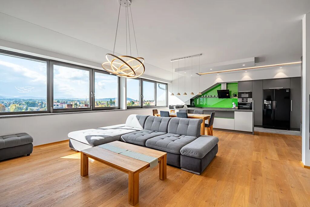 Nabízíme k dlouhodobému pronájmu exkluzivní a ikonický penthouse v rezidenci Lexor House – 3+kk o rozloze 153 m², umístěný v nejvyšším patře domu v centru Příbora.