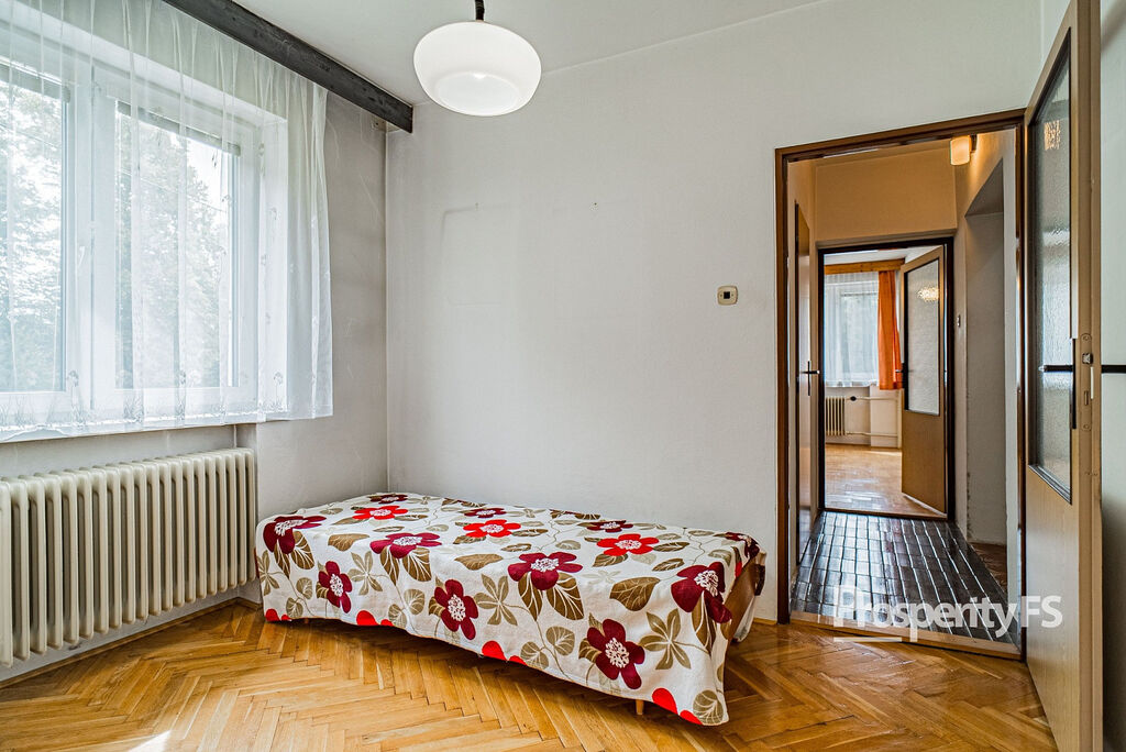V patře se nachází tři samostatné ložnice, půdní prostor a místnost připravená pro budoucí koupelnu a toaletu. Toto podlaží si tak můžete dokončit přesně podle svých představ a potřeb.