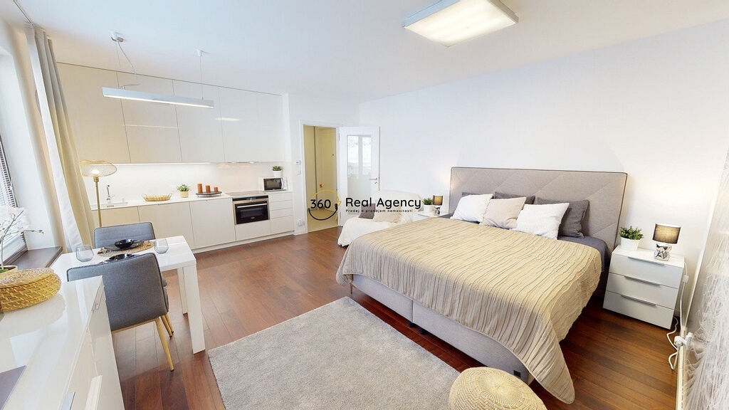 Tento útulný apartmán o dispozici 1+kk | 35 m² se nachází ve 3. NP domu s výtahem.