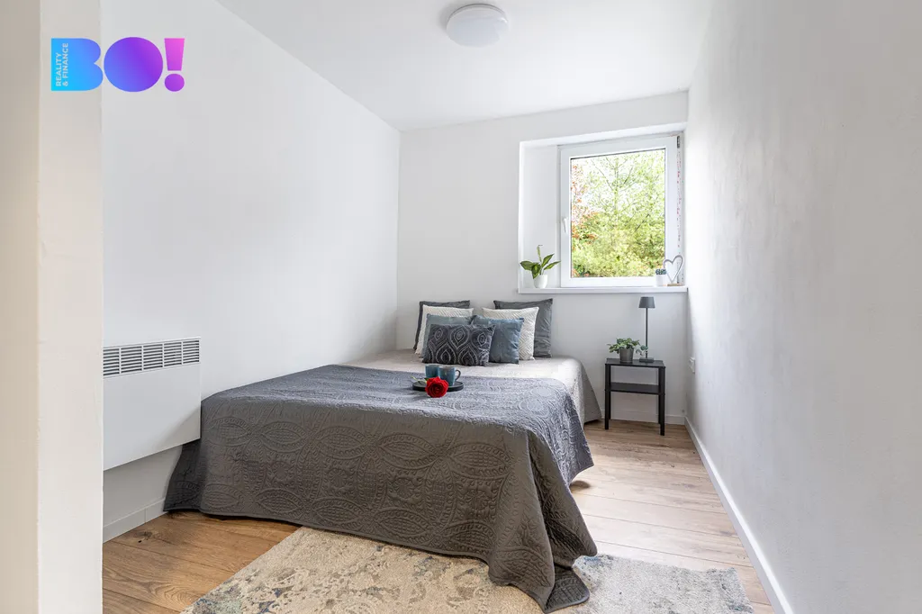 Byt je nezařízený - možnost doladit bydlení dle vlastního stylu, nová kuchyňská linka, plovoucí podlahy, myčka, pračka ve zrekonstruované koupelně. Byt je vytápěný elektrickými úspornými radiátory. K bytu náleží terasa k příjemnému posezení o výměře 12 m², která je vedena jako zimní a dvě parkovací místa.