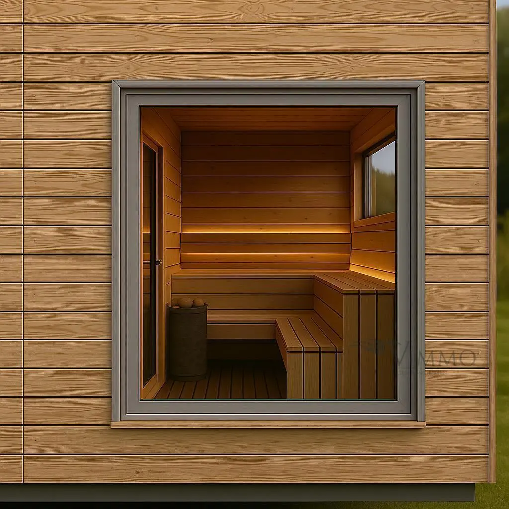 Nabízíme Vám saunový domek s celoročním provozem o výměře 24 m2 (3x8 m). Elegantní a moderní s přírodní fasádou ze sibiřského modřínu a s velkými prosklenými plochami v odpočívárně (k dispozici relaxační lehátka, police, úložné prvky), sprchovým koutem (s odtokovým žlabem, s LED osvětlením a zásuvkami), samostatnou toaletou, předsíní a saunou. Na přání lze také dodat variantu s plně mobilní konstrukci na tandemovém bržděném, podvozku (cena s podvozkem 1.099.000,-Kč). Ohřev vody zajišťuje elektrický bojler, vytápění zajišťuje klimatizační jednotka s funkcí topení (na přání zákazníka lze doplnit podlahové vytápění). Sauna s kapacitou 2-4 osoby vyhotovená ze severského smrku, dvouúrovňové, ergonomicky tvarované lavice, elektrická kamna o výkonu 11-12 kW s externím ovládáním, celoskleněné dveře s tvrzeným, bezpečnostním sklem, ventilace díky menšímu sklopnému oknu. Připraveno k okamžitému provozu a připojení sítí (vodovod, kanalizace, elektřina). Elegantní a zateplený objekt pro celoroční užívání, díky modřínové fasádě, sádrovláknitým deskám a oknům s trojskly nabízí dlouhou životnost, minimální údržbu a vysoký komfort. Ideální pro soukromé wellness, rekreační objekty nebo komerční pronájem. Tento saunový domek lez přizpůsobit plně individuálním požadavkům zákazníka - po vzájemné domluvě lze upravit dispozici, použité materiály, barevné řešení, způsob vytápění, typ fasády či vybrat doplňky, dále je možné přidat venkovní terasu, zastřešení vstupu, venkovní sprchu, ochlazovací káď nebo koupací sud. Cena včetně právního servisu. Pro více informací nás neváhejte kontaktovat. Veškeré údaje obsažené v tomto inzerátu mají pouze informativní charakter a nejsou tak ve smyslu občanského zákoníku: (i) návrhem na uzavření smlouvy dle § 1731 a § 1732; ani (ii) veřejným příslibem dle § 1733. Uveřejněním tohoto inzerátu nevzniká uživateli služby ani jakýmkoli třetím osobám nárok na uzavření smlouvy, zejména se vylučuje aplikace § 1732 odst. 2 občanského zákoníku.