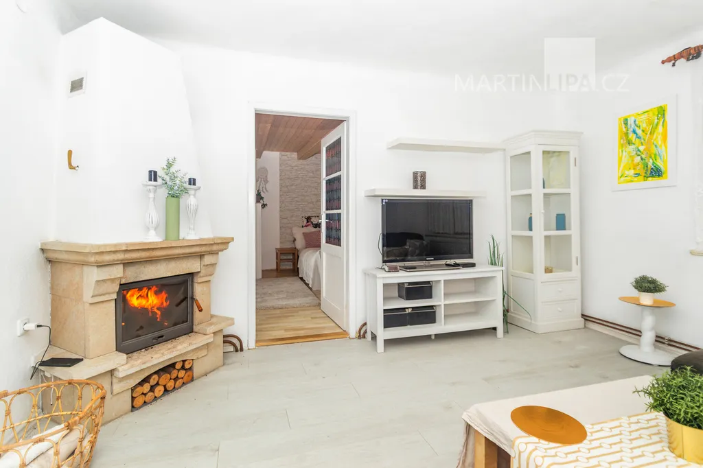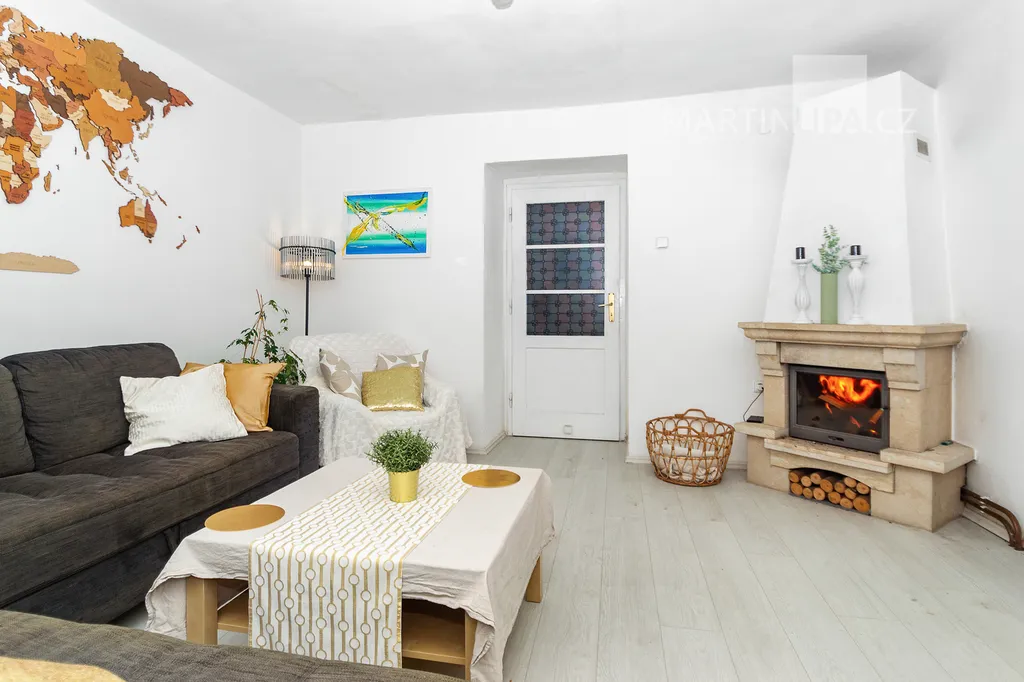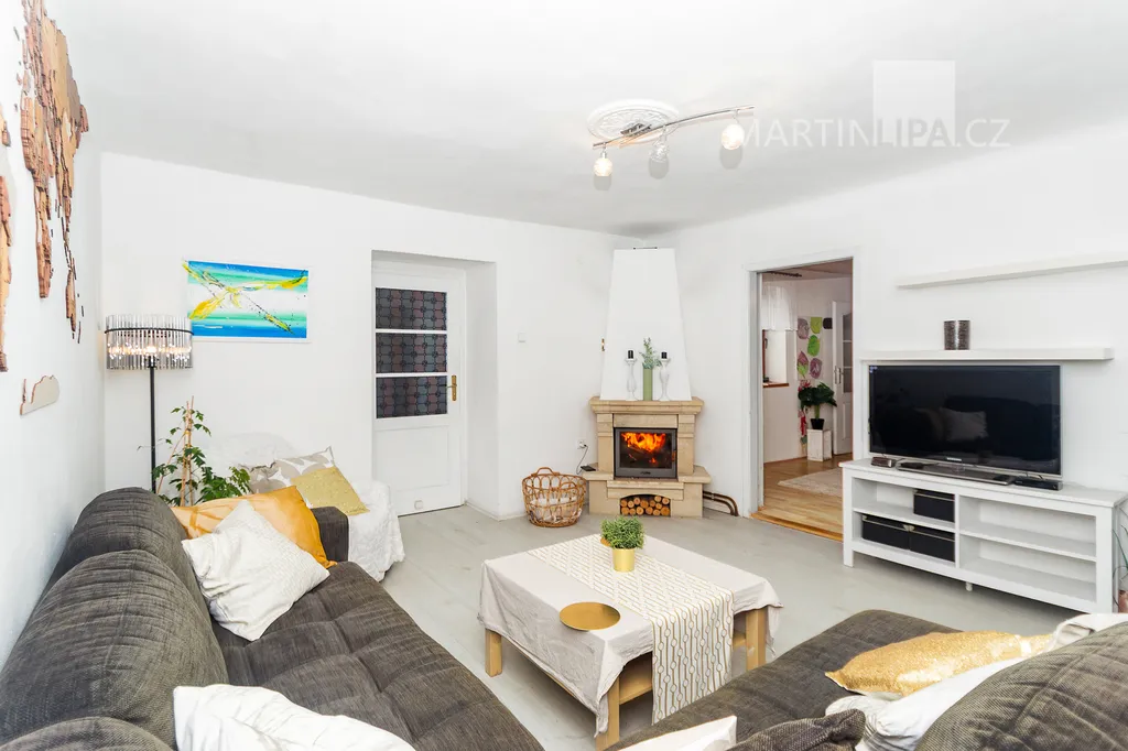 V současném obývacím pokoji je krásný krb, který umí dobře načatý den protáhnout o večer v útulné a romantické atmosféře. Zatímco léto budete asi trávit v altánu, v zimě můžete koukat do plamenů uvnitř.