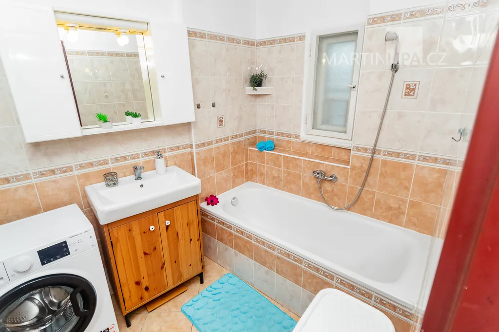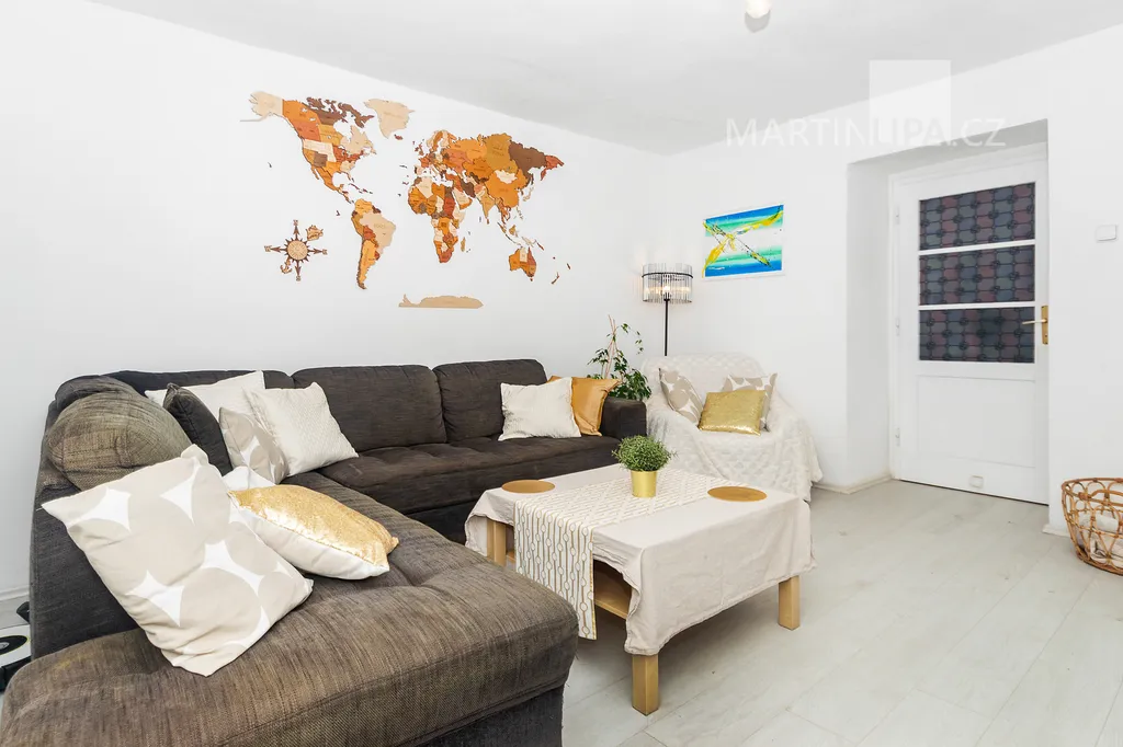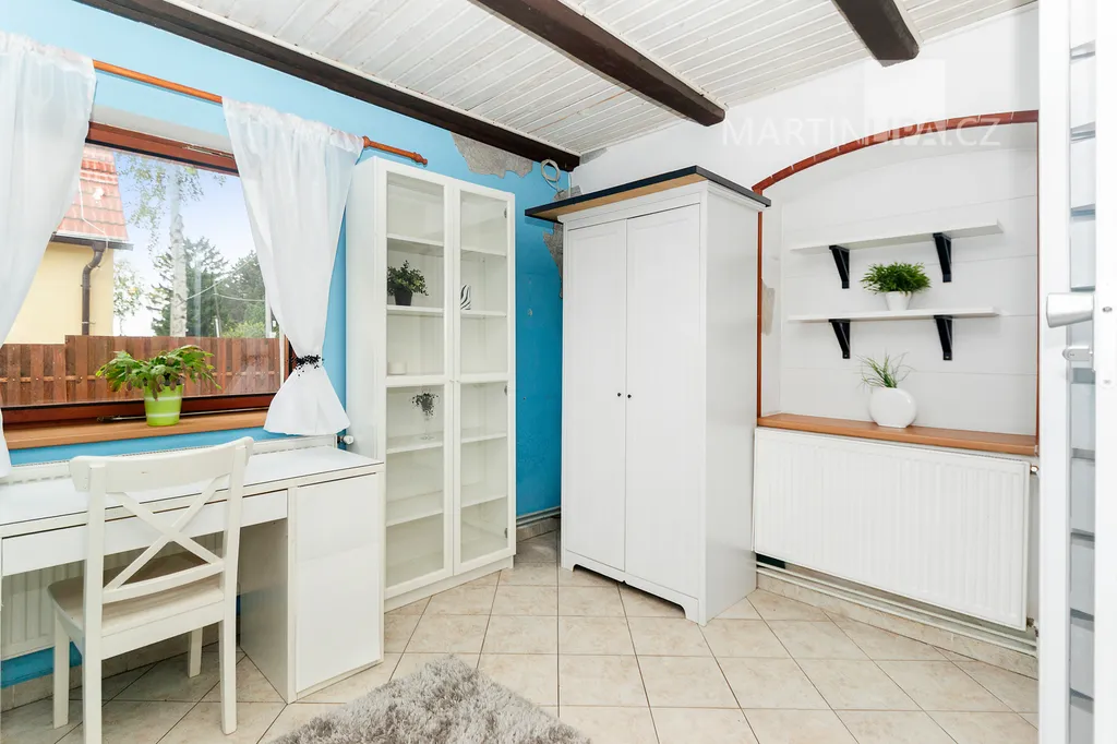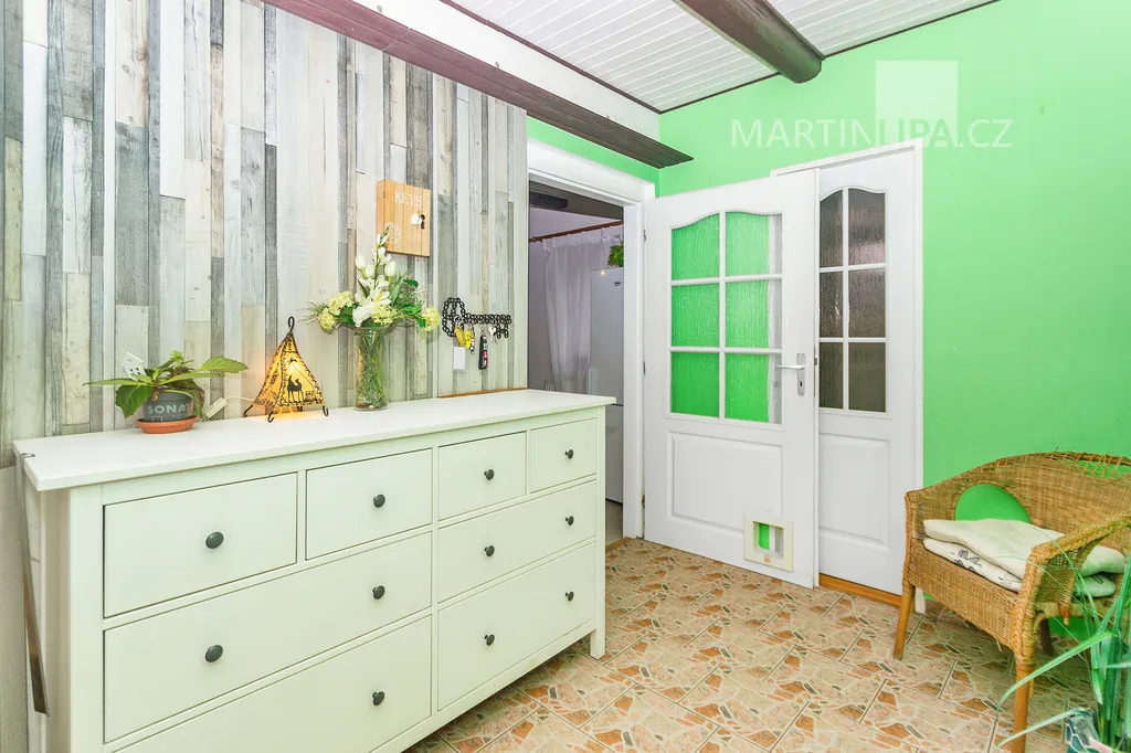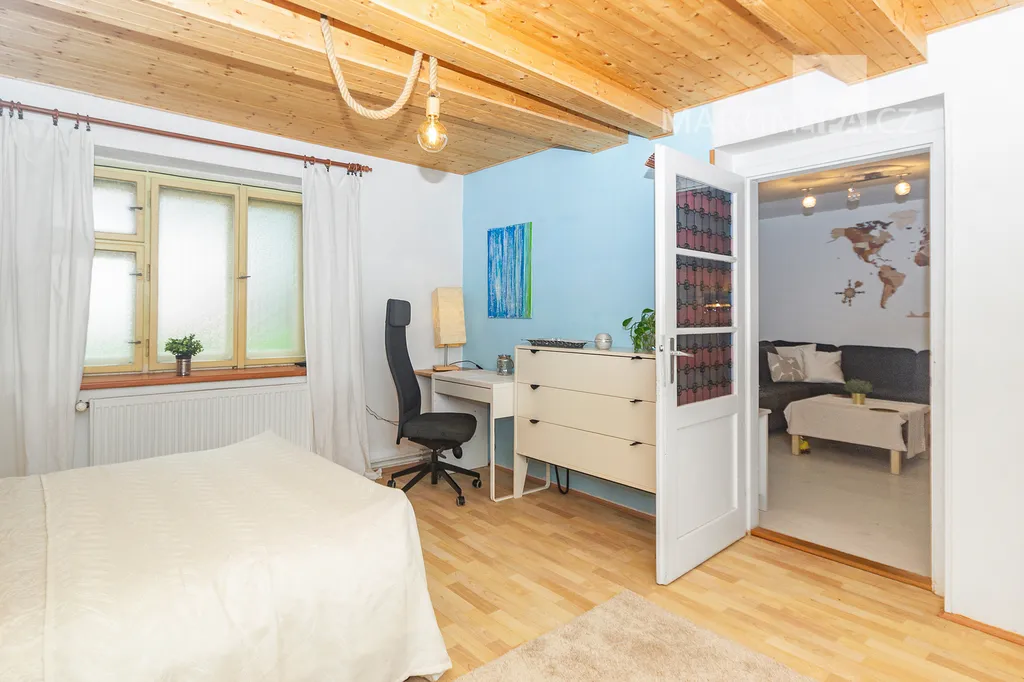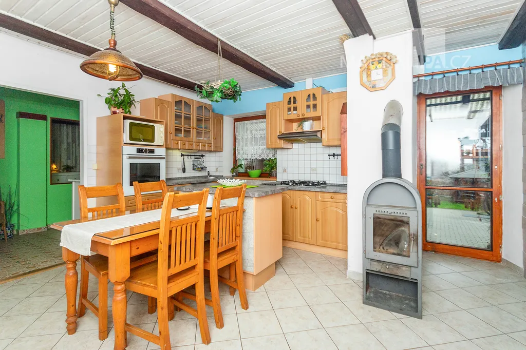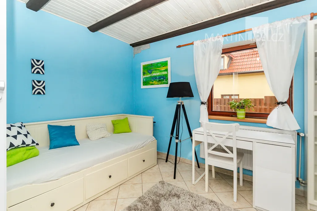 Dům je starší poctivý kus. Plně obyvatelný, místy s trochu unaveným make-upem, ale přitom upřímně připravený na další kapitolu. Rozhodně by vás neměl nijak překvapovat – a když, tak spíš pozitivně. V roce 2016 dostal novou střechu včetně krovu s krytinou Bramac, topí plynovým kotlem Vaillant (2002) a část oken se měnila v roce 2003. Dispozice 4+1 dává smysl v běžném provozu a pokud by vám to bylo málo, je zde velkrysá půda, přímo stvořená pro vestavbu dalších pokojů. Minimálně dva nebo tři by se tam v pohodě vešly. Střešní okna jsou již nainstalována a na vás by zůstalo jen to vymyslet a dotvořit.