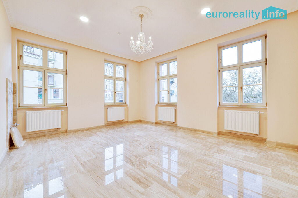Nabízíme k pronájmu nebytové prostory v historickém činžovním domě na atraktivním a autem dostupném místě v centru lázeňského území města Karlovy Vary. Celý dům, včetně společných prostor a fasády, prošel v roce 2015 kompletní rekonstrukcí v nejvyšším standardu. Interiéry zdobí křišťálové lustry, na podlahách je italský mramor a v každém pokoji i na chodbách je vestavěný stropní zvukový systém. Okna jsou dřevo-plastová, prostory jsou nabízeny bez vybavení.