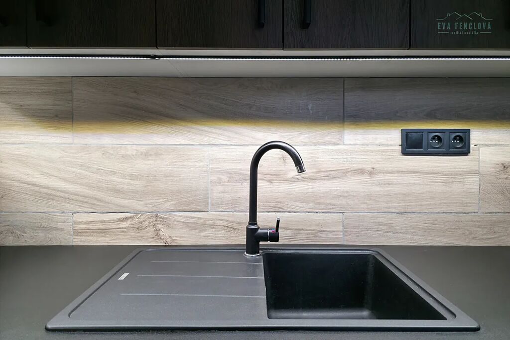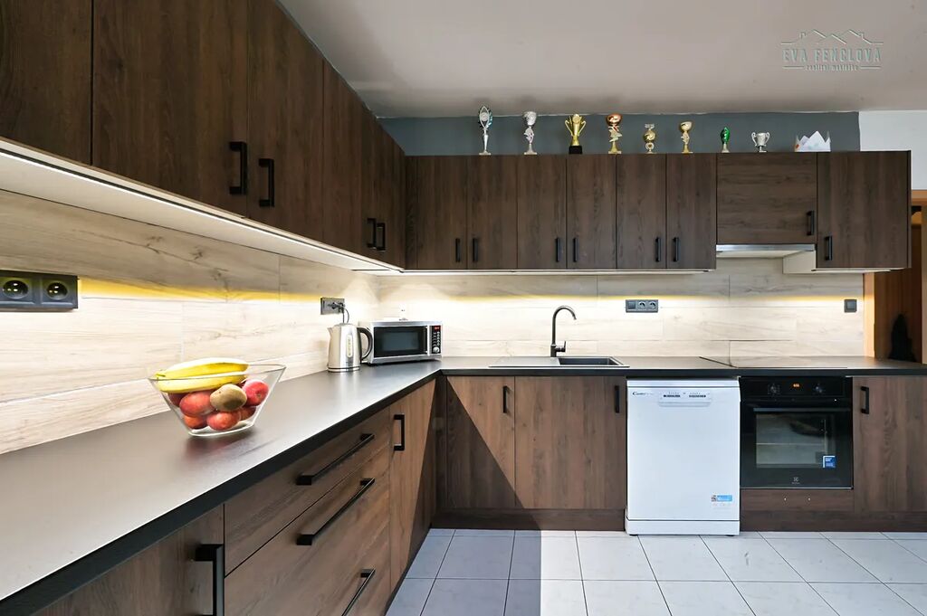 Byt je ve druhém patře má nově zrekonstruovanou kuchyňskou linku.