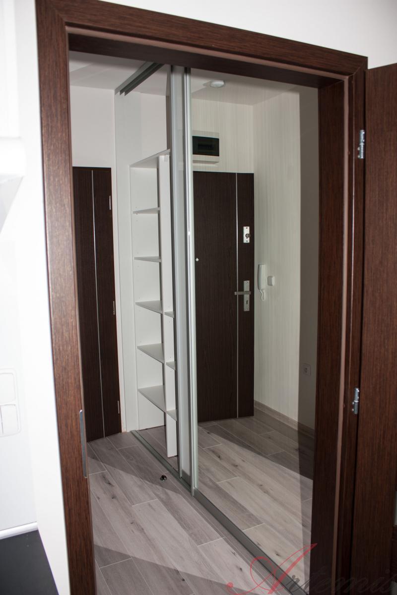 V bytě se nachází - zádveří s vestavěnými skříněmi a zrcadly, koupelna s WC, kuchyňský kout a pokoj s výstupem na balkon. Slunný byt.