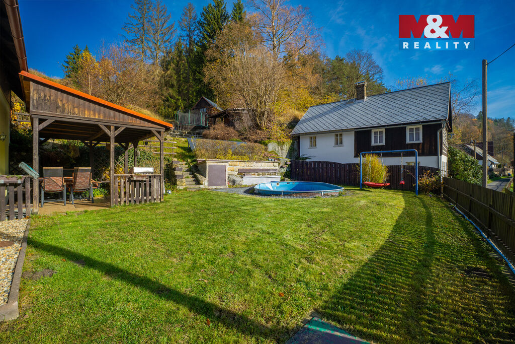 Hledáte ideální místo pro rekreaci a odpočinek uprostřed krásné přírody? Představujeme vám rekreační dům v malebném prostředí Horního Prysku (CHKO Lužické hory) je ideální základnou pro aktivní odpočinek i klidné rodinné chvíle. Na pozemku o celkové rozloze 1266 m2 se nachází oplocené rovné hřiště pro děti v horní části zahrady, zastíněná terasa pro relax, skalní sklep pro úschovu dobrot a jiné. Chalupa je s vybavením, vytápěna kotlem na pevná paliva s rozvody do radiátorů, voda z veřejného řádu ohřívaná pomocí bojleru napojeného na kotel, odpadní vody svedeny do septiku. V přízemí se nachází vstupní chodba, obývací pokoj s krbem, jídelna s kuchyní a koupelna s toaletou. V patře dva pokoje a vstup na zahradu, v podkroví jedna místnost na spaní. V okolí naleznete nespočet tras (Střední vrch, Meixnerova stezka, Panská skála), snadný přístup na Lužickou běžkařskou magistrálu a blízko ke Ski areálu Polevsko. Pro další informace a domluvení prohlídky volejte makléře.