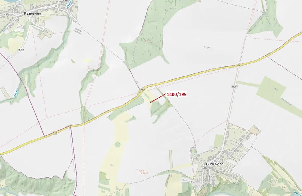 Lesní pozemek o výměře 16 m2, parcelní číslo 1400/199, podíl 1/1, katastrální území Budkovice, obec Ivančice, obec s rozšířenou působností Ivančice, okres Brno-venkov, Jihomoravský kraj.