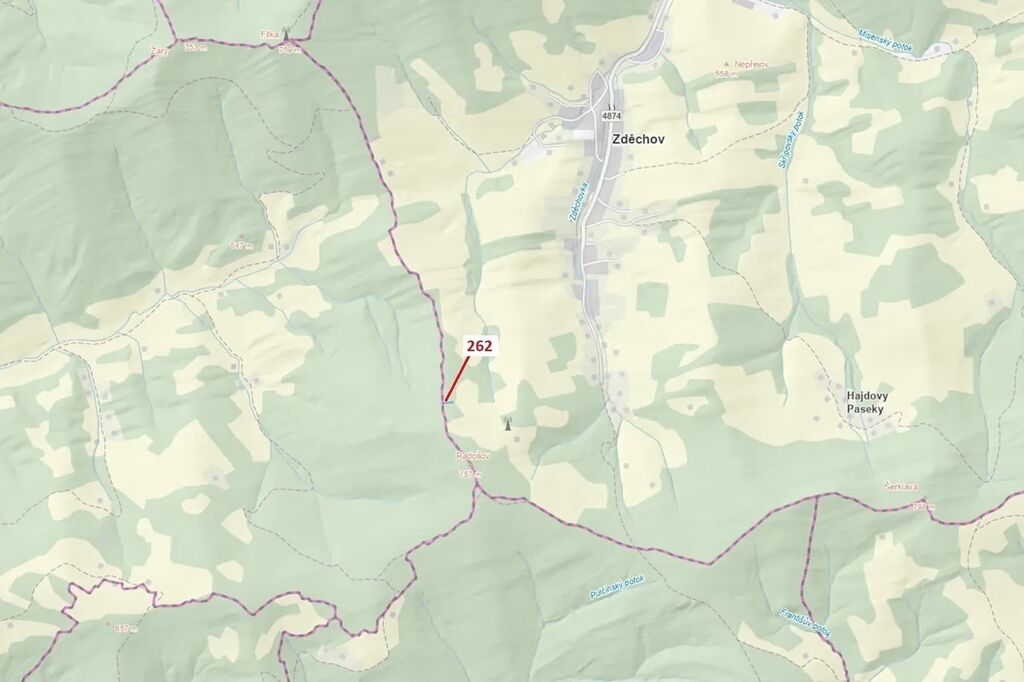 Lesní pozemek o výměře 273 m2, parcelní číslo 262, podíl 1/1, katastrální území Zděchov, obec Zděchov, obec s rozšířenou působností Vsetín, okres Vsetín, Zlínský kraj.