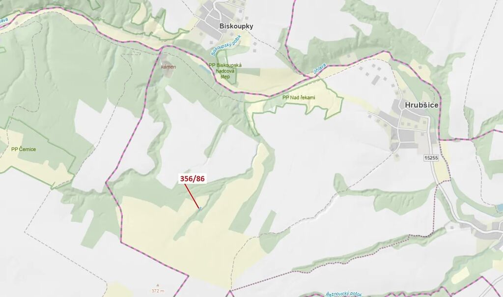Trvalý travní porost o výměře 252 m2, parcelní číslo 356/86, podíl 1/1, katastrální území Hrubšice, obec Ivančice, obec s rozšířenou působností Ivančice, okres Brno-venkov, Jihomoravský kraj.