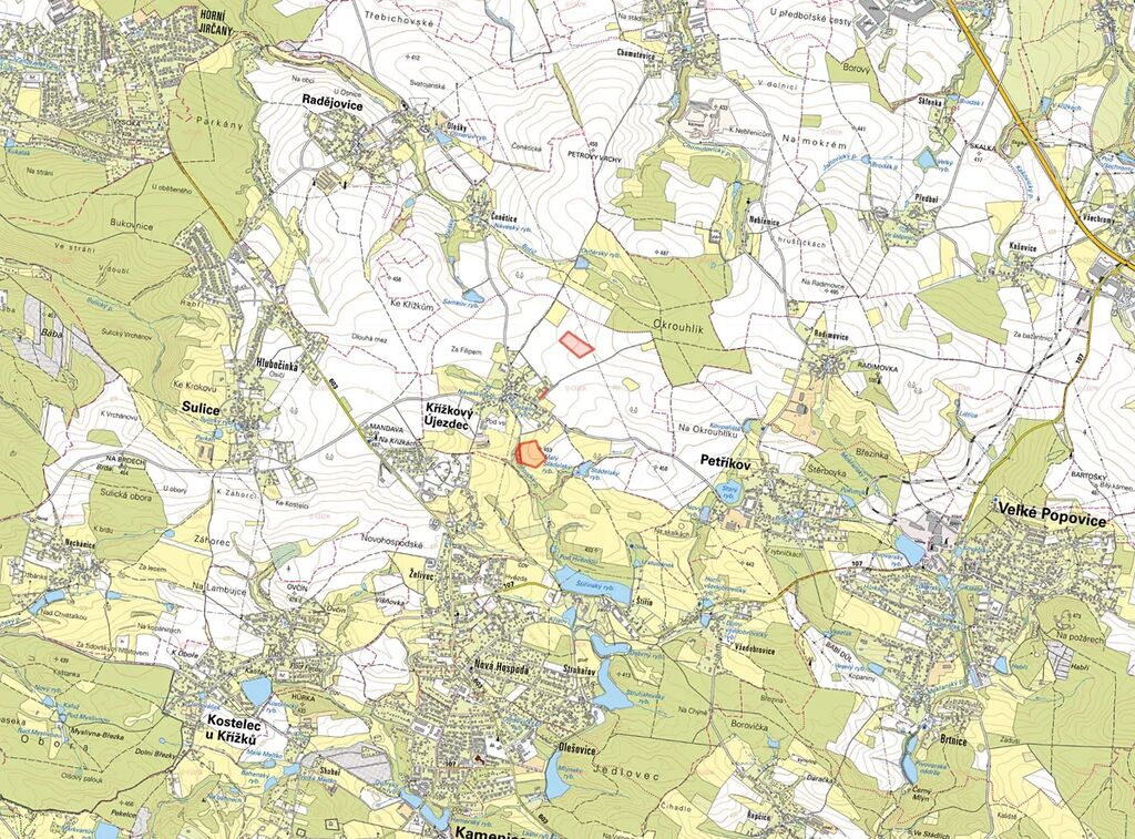 V okrese Praha-východ, v katastrálním území Křížkový Újezdec, nabízíme k prodeji spoluvlastnický podíl 1/4 na souboru zemědělských pozemků zapsaných na listu vlastnictví č. 265. Jedná se o parcely č. 830, 842, 922 a 923.