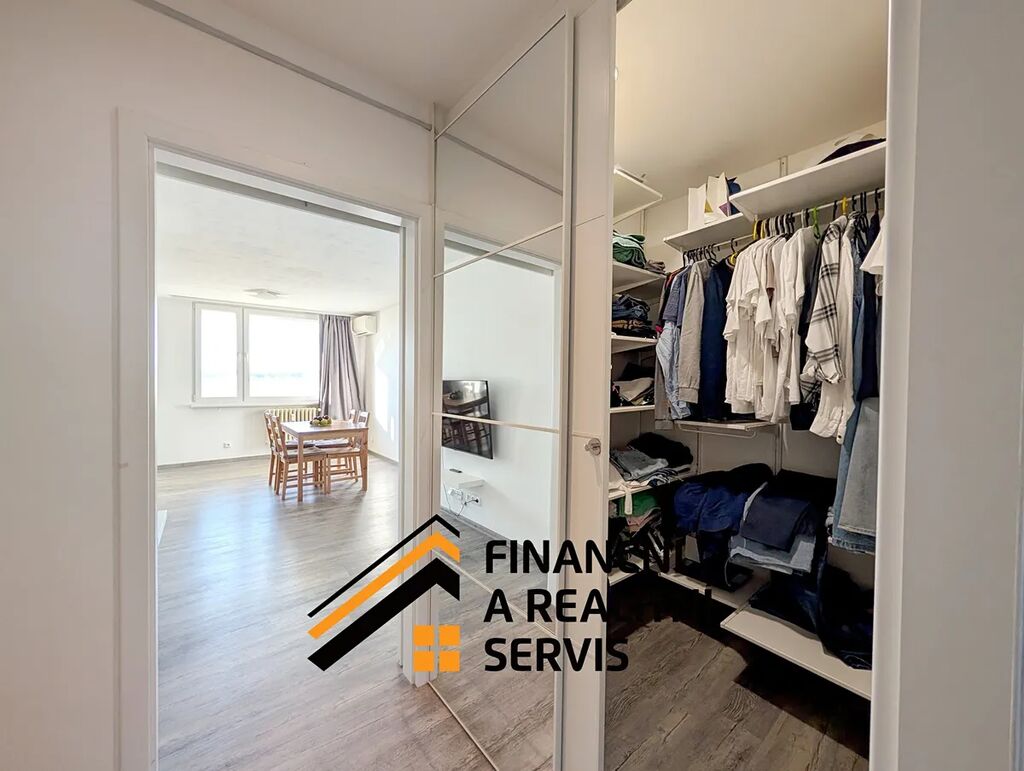 Dispozice: dvě ložnice, obývací pokoj spojený s kuchyňským koutem, vybaveným kvalitní a stylovou kuchyňskou linkou, dále prostorná chodba s vestavěnou skříní a samostatnou šatnou, koupelna se sprchovým koutem a samostatné WC.