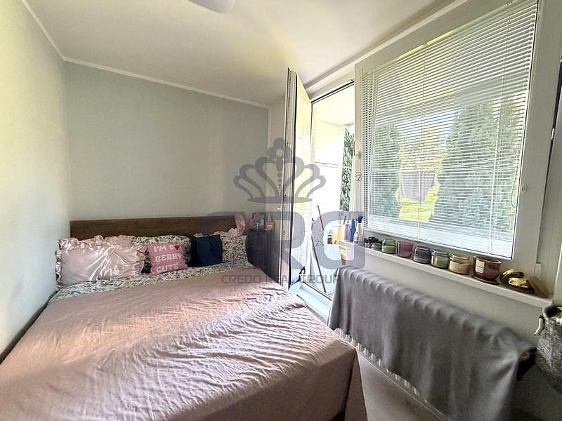 Za vstupními bezpečnostními dveřmi do bytu se nachází chodba o výměře cca 3,19 m². Z chodby je vstup do moc pěkné kuchyně, kde se nachází velmi prostorná kuchyňská linka na míru s vestavnými spotřebiči jako je pečící trouba, lednice s mrazákem a sklo-keramická deska. Z kuchyně o výměře cca 13,16m² je krásný výhled do okolní přírody, kam jsou obě obytné místnosti v bytě orientovány. Z kuchyně vejdeme do pokoje, který může sloužit jako ložnice, ale i jako kombinace obývacího pokoje s ložnicí. Celková výměra ložnice činí cca 7,64m². Dominantou této místnosti je balkón o výměře cca 4,27m², ze kterého je nádherný výhled do přírody a přímo vybízí k odpočinku a relaxaci. Koupelna o výměře cca 4,82m² je prostorná a nedávno nově vybudovaná. Její součástí je prostorný sprchový kout, umyvadlo a WC.